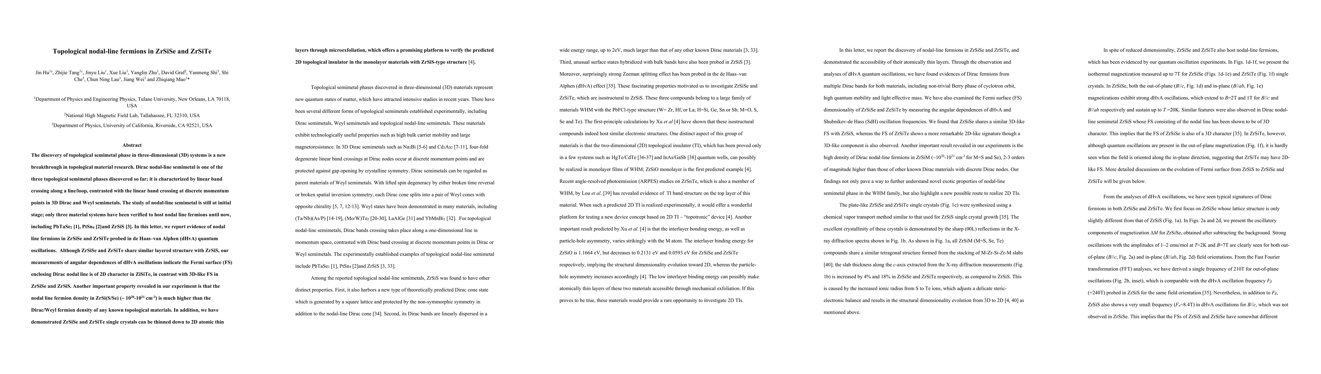 This paper reports the discovery of topological nodal-line fermions in ZrSiSe and ZrSiTe through de Haas-van Alphen quantum oscillations, highlighting their unique Fermi surface characteristics and significantly higher nodal line fermion density compared to other topological materials.