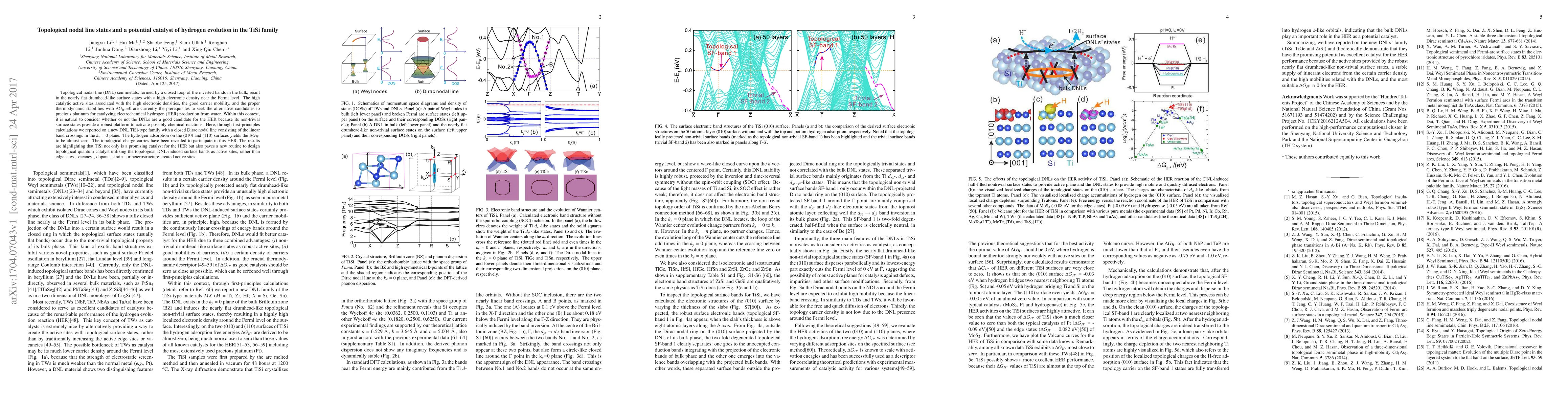 This paper reports on topological nodal line semimetals in the TiSi family, which exhibit nearly flat surface states with high electronic density near the Fermi level. The study finds that these materials, with nearly zero hydrogen adsorption energy, are promising catalysts for hydrogen evolution reactions, offering a new approach to designing quantum catalysts based on topological nodal line-induced surface states.