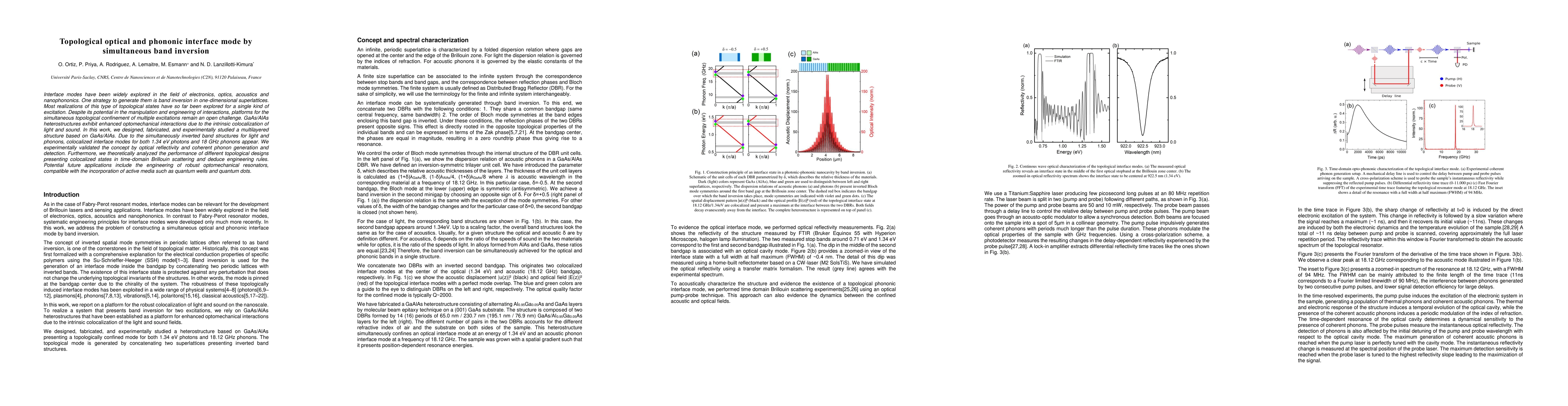 This paper explores the generation of topological interface modes in GaAs/AlAs heterostructures via simultaneous band inversion for both optical and phononic excitations. The study demonstrates colocalized interface modes for photons and phonons, validated experimentally and theoretically, with potential applications in robust optomechanical resonators.