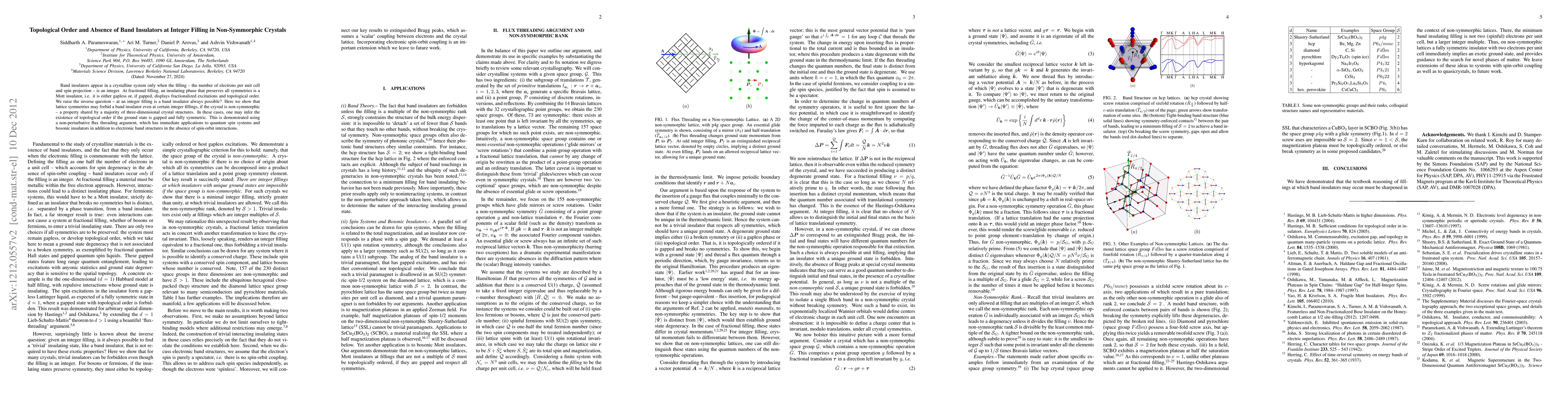 Band insulators appear in a crystalline system only when the filling -- the number of electrons per unit cell and spin projection -- is an integer. At fractional filling, an insulating phase that preserves all symmetries is a Mott insulator, i.e. it is either gapless or, if gapped, displays fractionalized excitations and topological order. We raise the inverse question -- at an integer filling is a band insulator always possible? Here we show that lattice symmetries may forbid a band insulator even at certain integer fillings, if the crystal is non-symmorphic -- a property shared by a majority of three-dimensional crystal structures. In these cases, one may infer the existence of topological order if the ground state is gapped and fully symmetric. This is demonstrated using a non-perturbative flux threading argument, which has immediate applications to quantum spin systems and bosonic insulators in addition to electronic band structures in the absence of spin-orbit interactions.