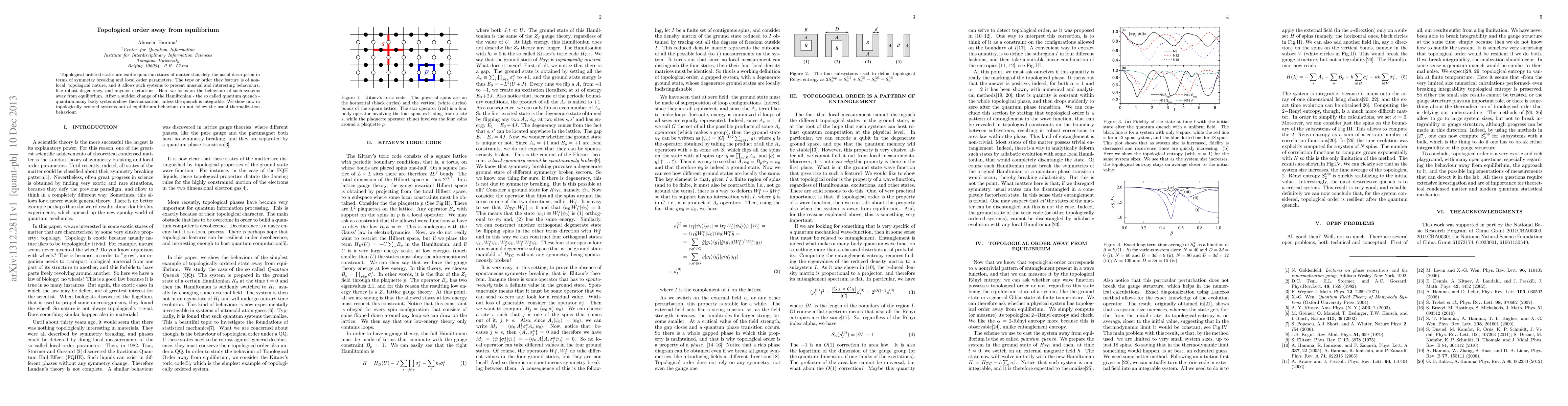 This paper investigates the behavior of topologically ordered quantum systems away from equilibrium following a quantum quench. It demonstrates that unlike typical systems, topologically ordered states do not thermalize and instead exhibit unique non-local behaviors.