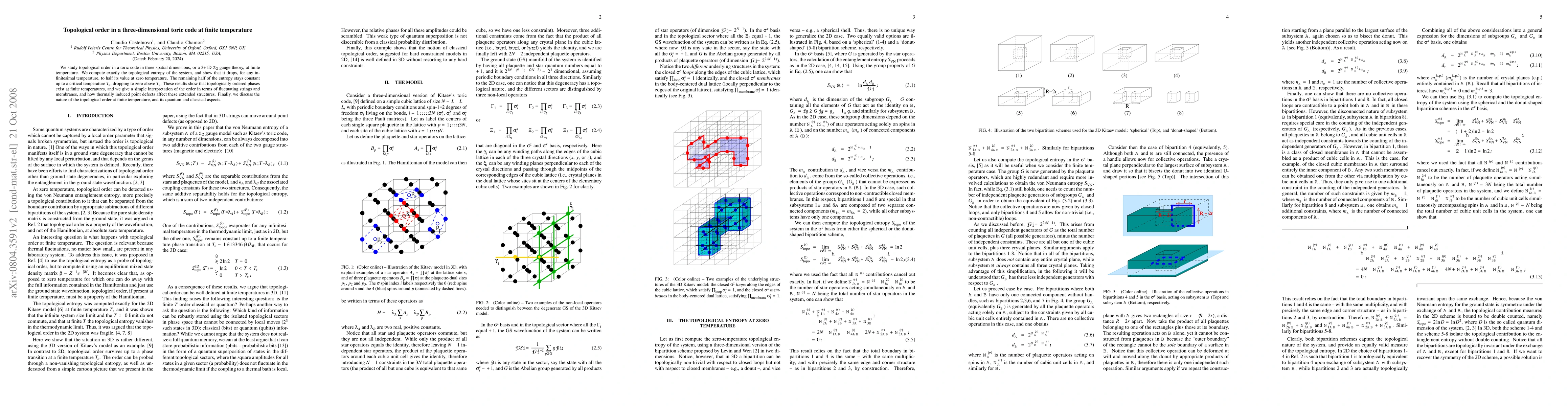 This paper investigates topological order in a 3D toric code at finite temperature, revealing that the topological entropy decreases to half its zero-temperature value with any infinitesimal temperature, and fully vanishes above a critical temperature Tc. The study provides insights into the nature of topological order at finite temperatures through fluctuating strings and membranes.