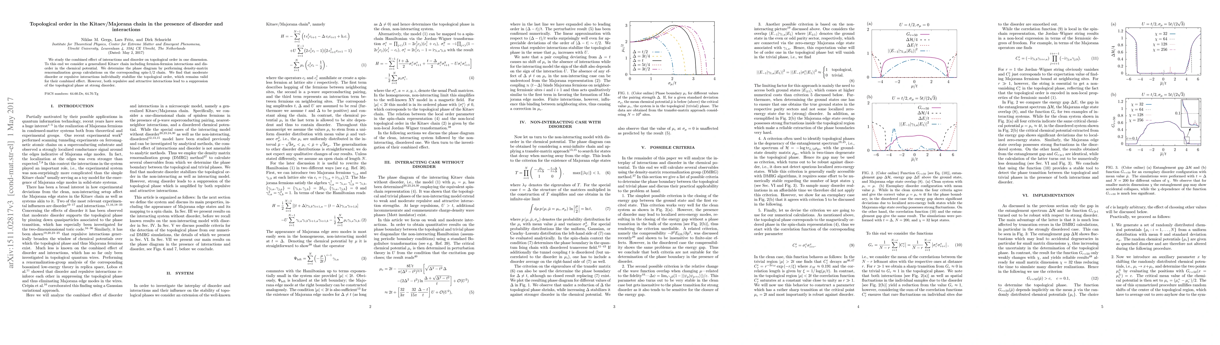 We study the combined effect of interactions and disorder on topological order in one dimension. To this end we consider a generalized Kitaev chain including fermion-fermion interactions and disorder in the chemical potential. We determine the phase diagram by performing density-matrix renormalization group calculations on the corresponding spin-1/2 chain. We find that moderate disorder or repulsive interactions individually stabilize the topological order, which remains valid for their combined effect. However, both repulsive and attractive interactions lead to a suppression of the topological phase at strong disorder.