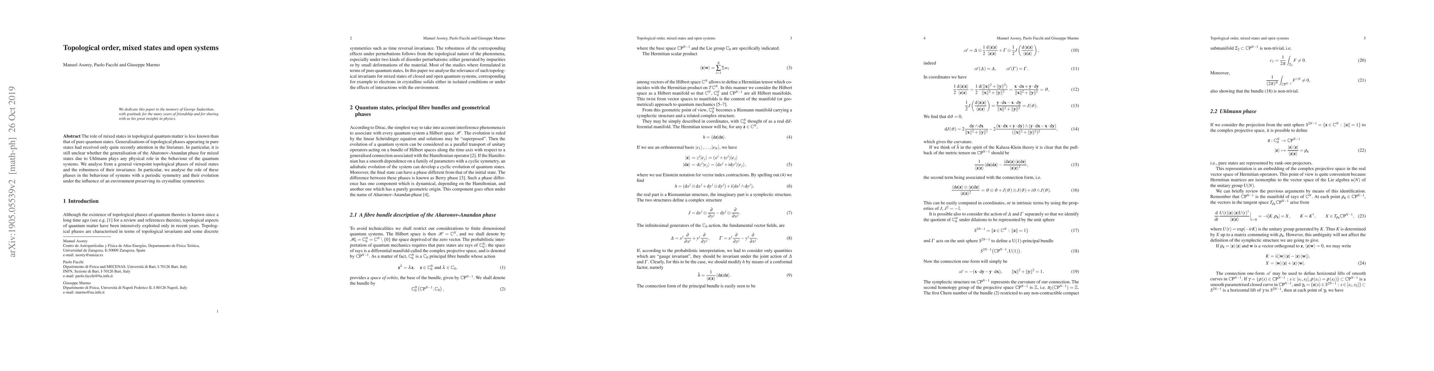 The role of mixed states in topological quantum matter is less known than that of pure quantum states. Generalisations of topological phases appearing in pure states had received only quite recently attention in the literature. In particular, it is still unclear whether the generalisation of the Aharonov-Anandan phase for mixed states due to Uhlmann plays any physical role in the behaviour of the quantum systems. We analyse from a general viewpoint topological phases of mixed states and the robustness of their invariance. In particular, we analyse the role of these phases in the behaviour of systems with a periodic symmetry and their evolution under the influence of an environment preserving its crystalline symmetries.