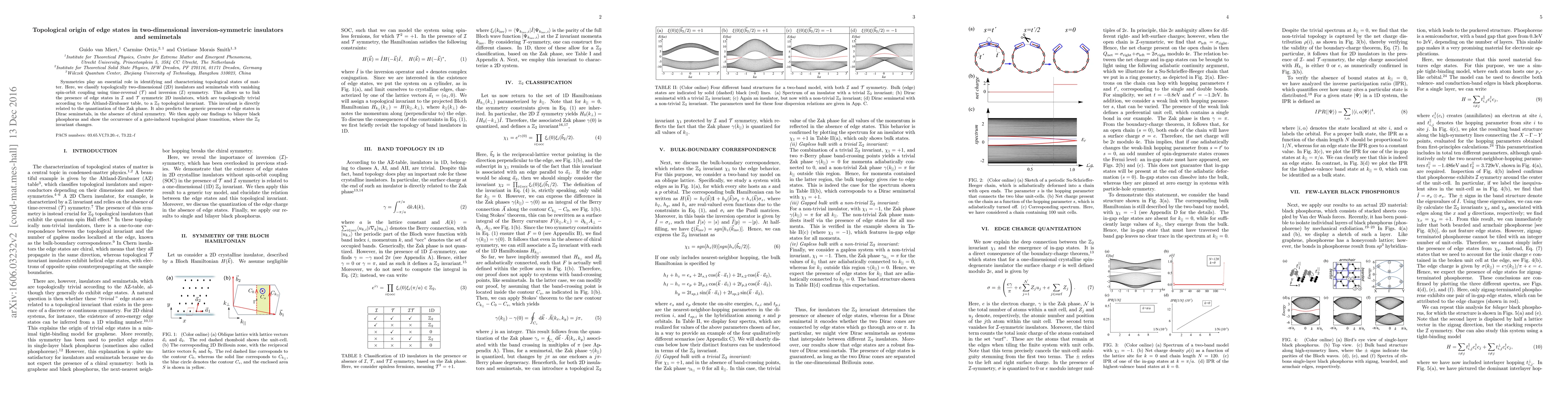 Symmetries play an essential role in identifying and characterizing topological states of matter. Here, we classify topologically two-dimensional (2D) insulators and semimetals with vanishing spin-orbit coupling using time-reversal ($\mathcal{T}$) and inversion ($\mathcal{I}$) symmetry. This allows us to link the presence of edge states in $\mathcal{I}$ and $\mathcal{T}$ symmetric 2D insulators, which are topologically trivial according to the Altland-Zirnbauer table, to a $\mathbb{Z}_2$ topological invariant. This invariant is directly related to the quantization of the Zak phase. It also predicts the generic presence of edge states in Dirac semimetals, in the absence of chiral symmetry. We then apply our findings to bilayer black phosphorus and show the occurrence of a gate-induced topological phase transition, where the $\mathbb{Z}_2$ invariant changes.
