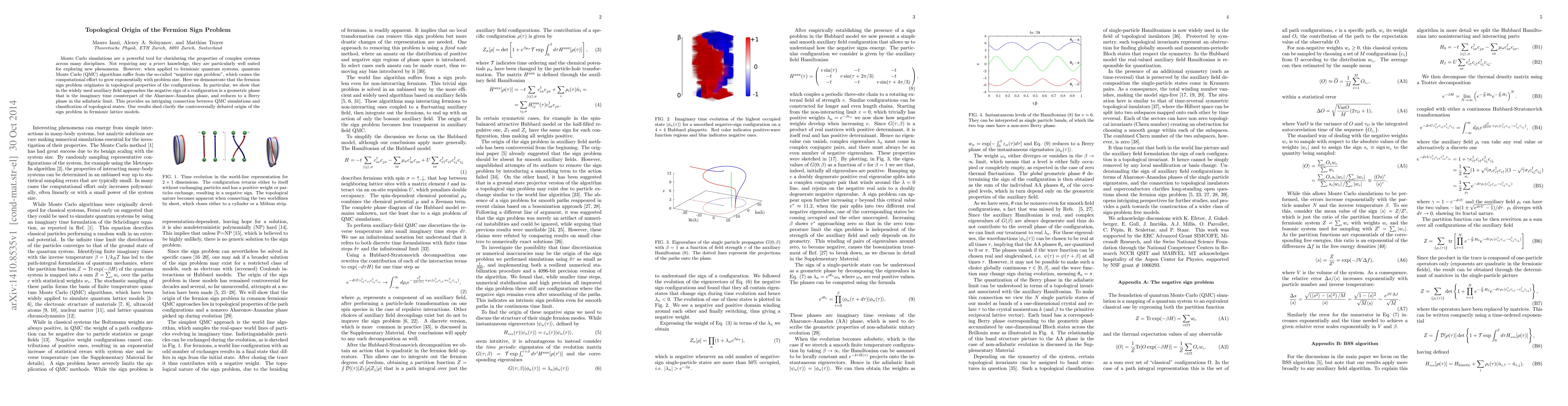 This paper demonstrates that the fermion sign problem in quantum Monte Carlo simulations arises from the topological properties of system configurations, specifically as a geometric phase akin to the Aharonov-Anandan phase. This insight connects the computational challenge to the classification of topological states, offering a new perspective on the debated origin of the sign problem in fermionic lattice models.