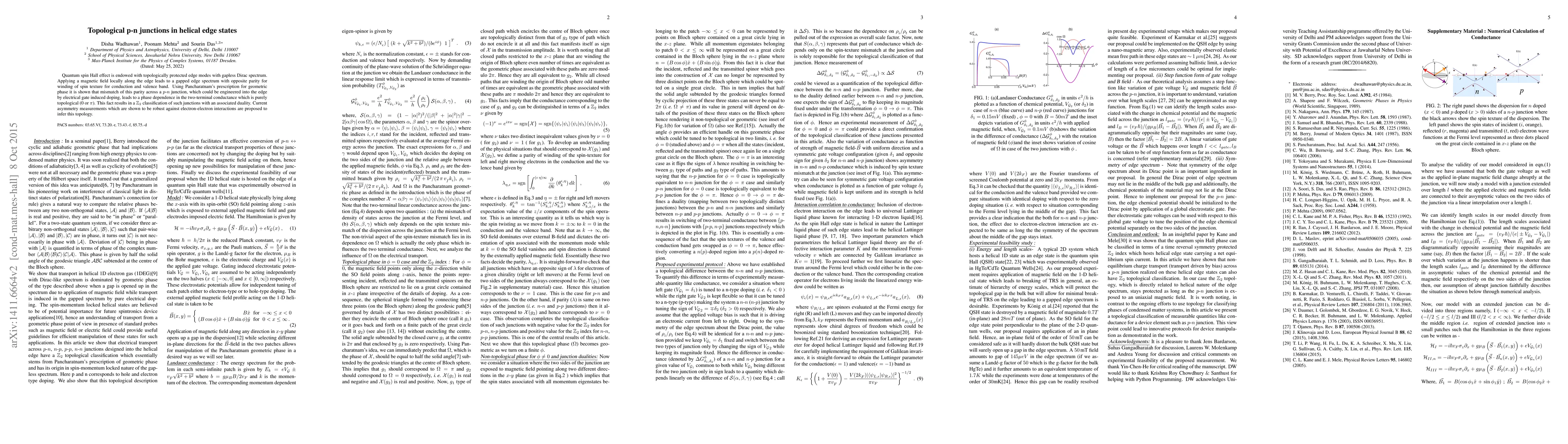 Quantum spin Hall effect is endowed with topologically protected edge modes with gapless Dirac spectrum. Applying a magnetic field locally along the edge leads to a gapped edge spectrum with opposite parity for winding of spin texture for conduction and valence band. Using Pancharatnam's prescription for geometric phase it is shown that mismatch of this parity across a $p$-$n$ junction, which could be engineered into the edge by electrical gate induced doping, leads to a phase dependence in the two-terminal conductance which is purely topological (0 or $\pi$). This fact results in a ${\mathbb{Z}}_2$ classification of such junctions with an associated duality. Current asymmetry measurements which are shown to be robust against electron-electron interactions are proposed to infer this topology.