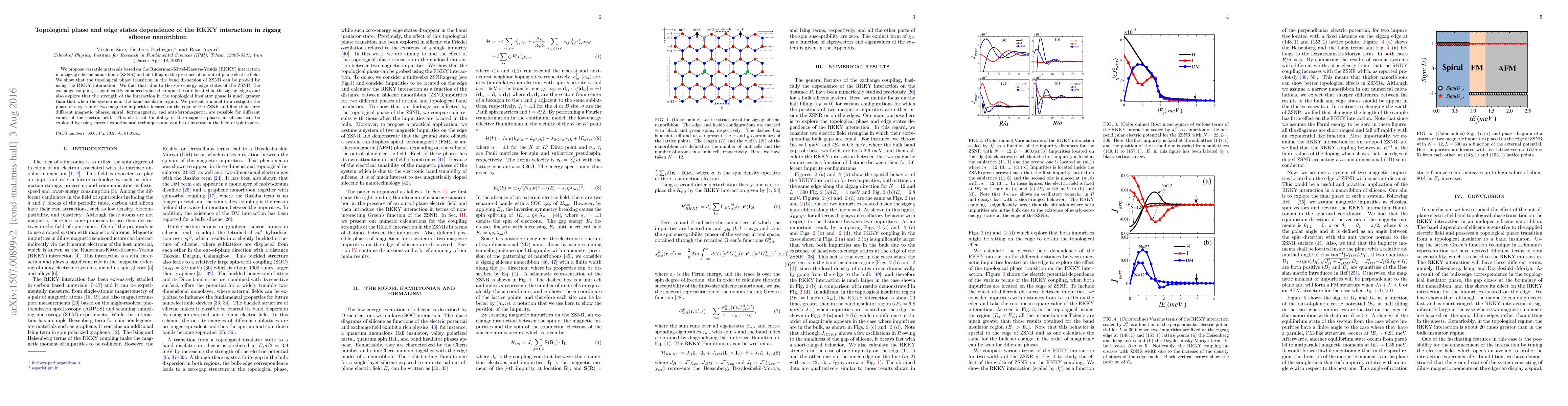 This research explores the RKKY interaction in zigzag silicene nanoribbons, demonstrating that topological phase transitions and edge states significantly enhance exchange coupling. It also reveals electrical tunability of magnetic phases, suggesting potential applications in spintronics.
