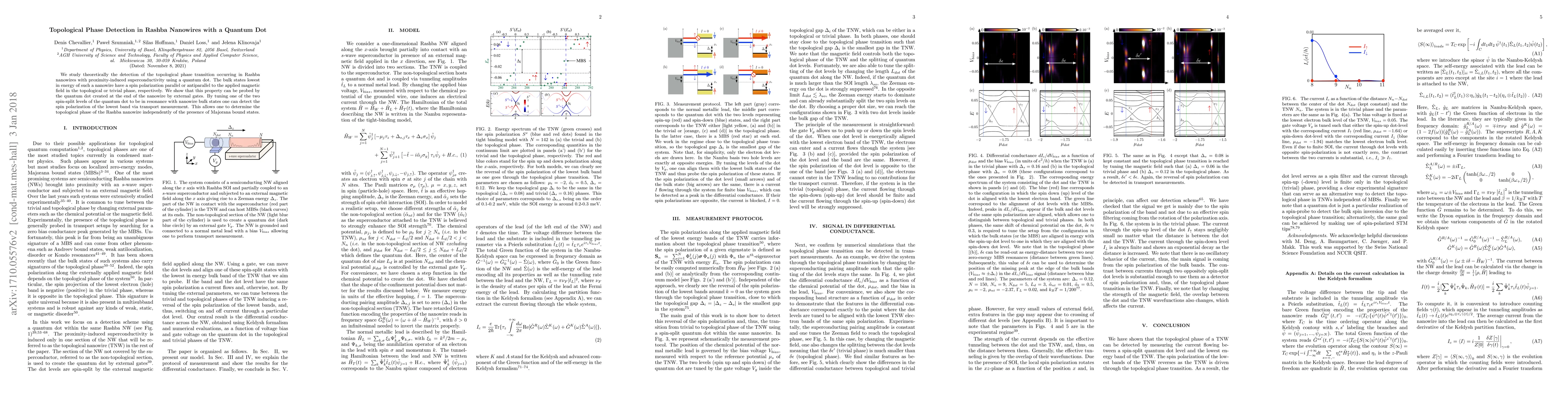 This paper theoretically explores detecting topological phase transitions in Rashba nanowires with proximity-induced superconductivity using a quantum dot. By tuning the quantum dot's spin-split levels to match nanowire's bulk states, transport measurements can reveal the spin polarization, thereby identifying the topological phase without relying on Majorana bound states.