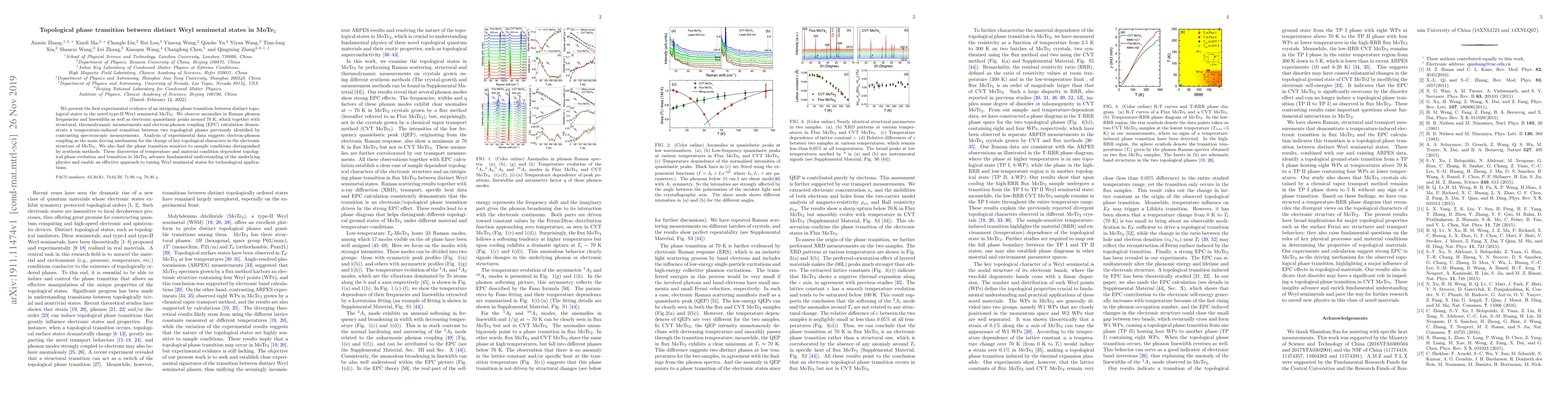 This paper reports experimental evidence of a temperature-induced phase transition between distinct topological states in MoTe2, driven primarily by electron-phonon coupling, with anomalies observed in Raman phonon frequencies and electronic properties. The findings suggest potential for tuning Weyl semimetal states for technological applications.