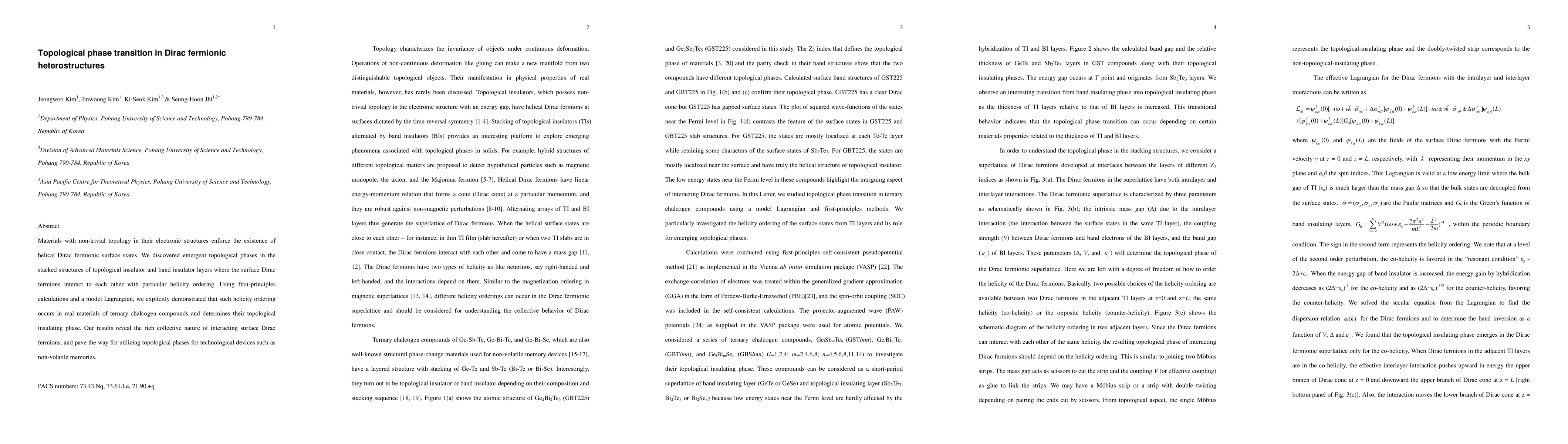 Materials with non-trivial topology in their electronic structures enforce the existence of helical Dirac fermionic surface states. We discovered emergent topological phases in the stacked structures of topological insulator and band insulator layers where the surface Dirac fermions interact to each other with particular helicity ordering. Using first-principles calculations and a model Lagrangian, we explicitly demonstrated that such helicity ordering occurs in real materials of ternary chalcogen compounds and determines their topological insulating phase. Our results reveal the rich collective nature of interacting surface Dirac fermions, and pave the way for utilizing topological phases for technological devices such as non-volatile memories.