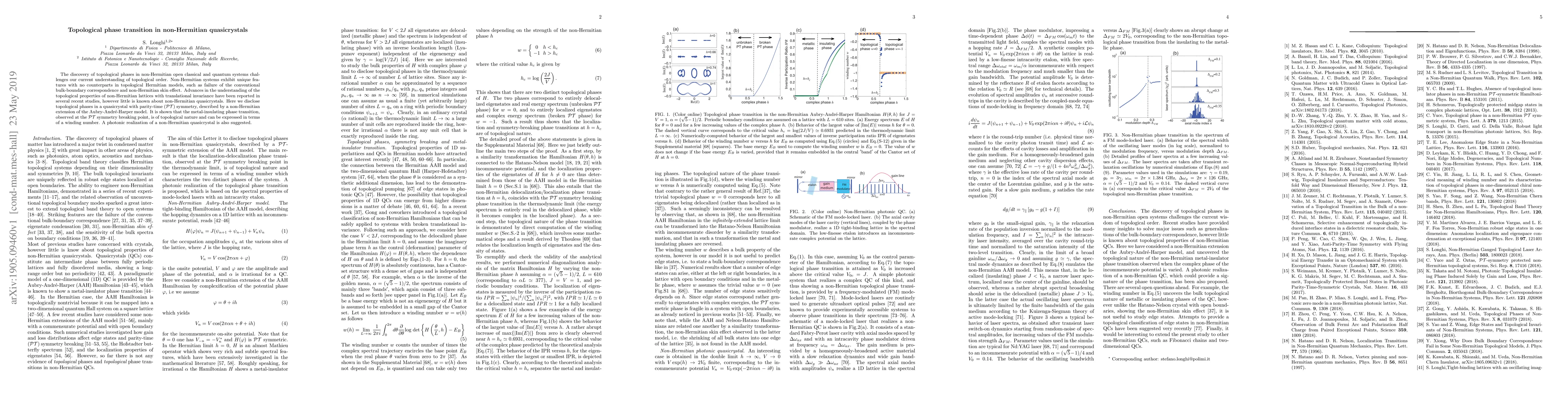 This paper reveals the existence of topological phases in non-Hermitian quasicrystals, demonstrating a metal-insulating phase transition at the $\mathcal{PT}$ symmetry breaking point, characterized by a winding number. A photonic realization of a non-Hermitian quasicrystal is proposed to further explore these unique topological properties.