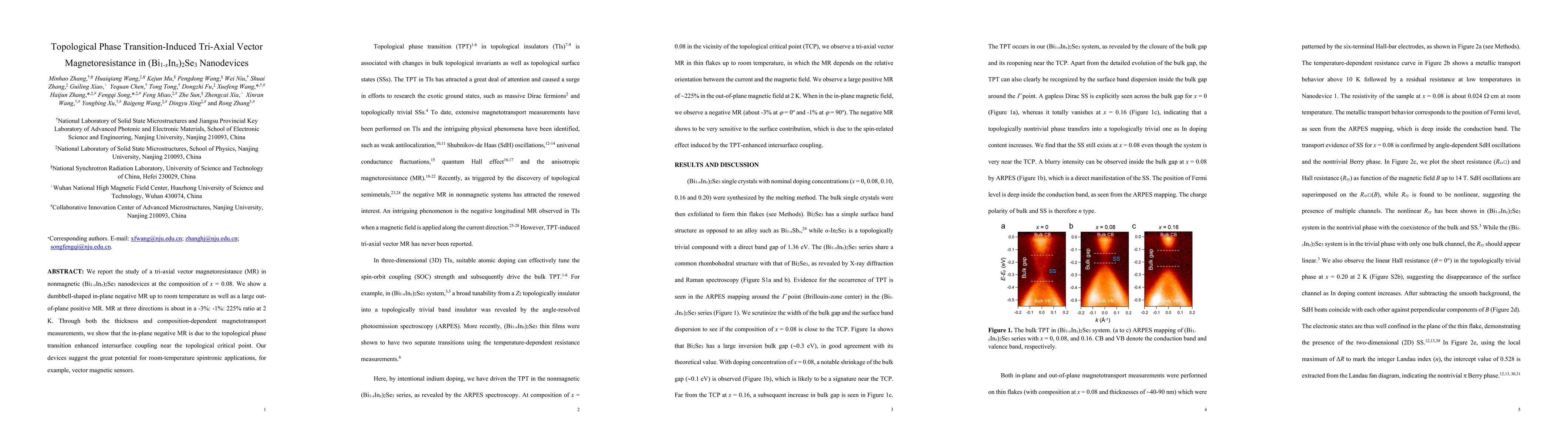 We report the study of a tri-axial vector magnetoresistance (MR) in nonmagnetic (Bi1-xInx)2Se3 nanodevices at the composition of x = 0.08. We show a dumbbell-shaped in-plane negative MR up to room temperature as well as a large out-of-plane positive MR. MR at three directions is about in a -3%: -1%: 225% ratio at 2 K. Through both the thickness and composition-dependent magnetotransport measurements, we show that the in-plane negative MR is due to the topological phase transition enhanced intersurface coupling near the topological critical point. Our devices suggest the great potential for room-temperature spintronic applications, for example, vector magnetic sensors.
