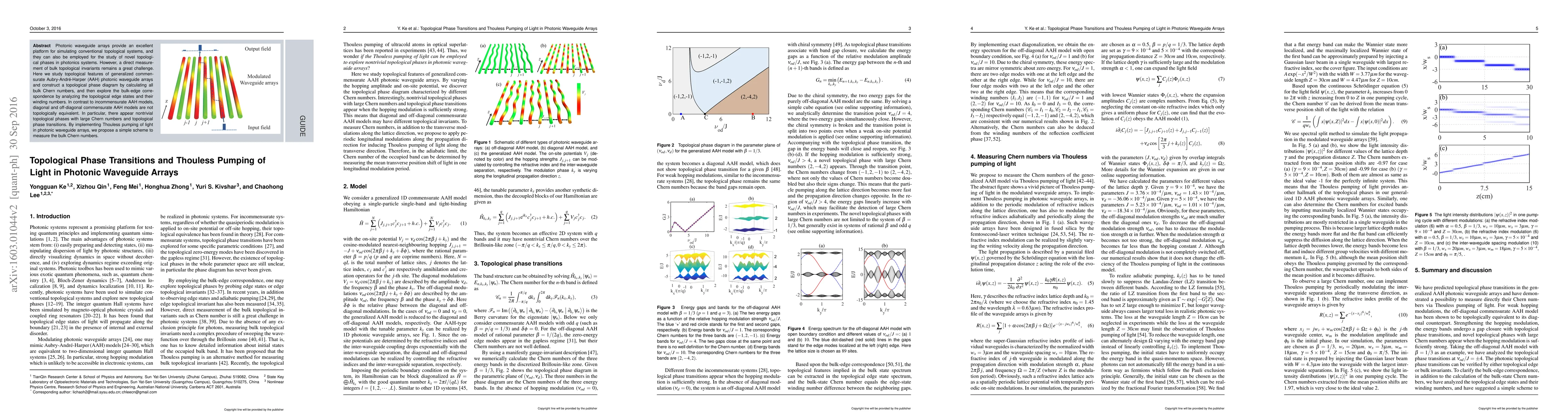 This paper investigates topological features in generalized commensurate Aubry-André-Harper photonic waveguide arrays, revealing nontrivial topological phases and phase transitions. The authors propose a method using Thouless pumping to measure bulk topological invariants, demonstrating a practical approach to studying topological photonics.