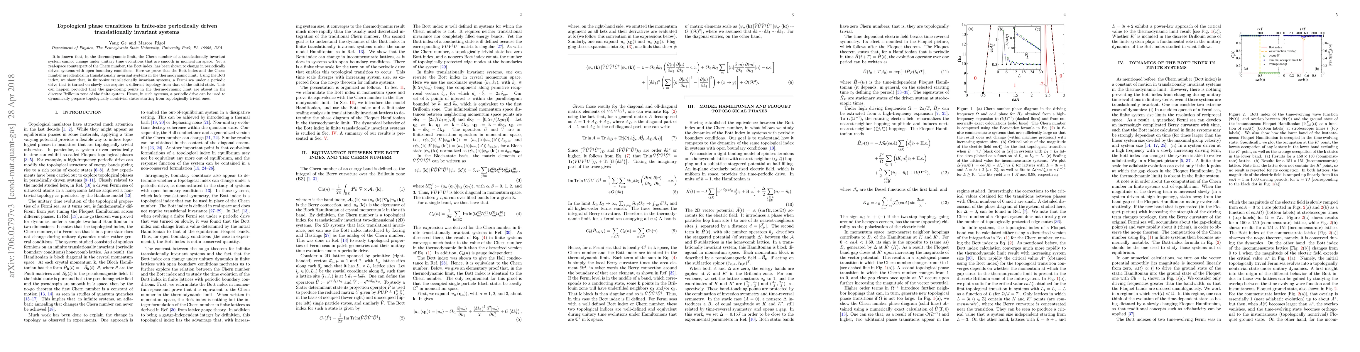 This paper demonstrates that the Bott index and Chern number are equivalent in translationally invariant systems in the thermodynamic limit. It also shows that finite-size periodic drives can induce topological phase transitions in Fermi seas, transforming topologically trivial states into nontrivial ones when gap-closing points are absent in the finite system's Brillouin zone.