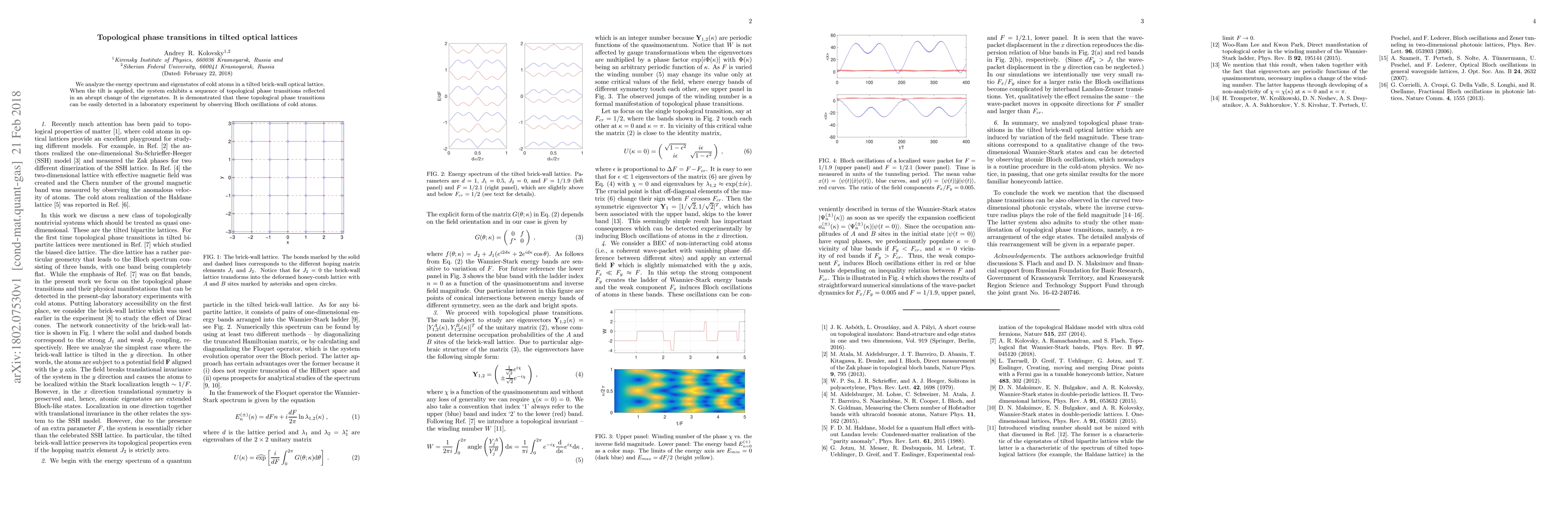 We analyze the energy spectrum and eigenstates of cold atoms in a tilted brick-wall optical lattice. When the tilt is applied, the system exhibits a sequence of topological phase transitions reflected in an abrupt change of the eigenstates. It is demonstrated that these topological phase transitions can be easily detected in a laboratory experiment by observing Bloch oscillations of cold atoms.
