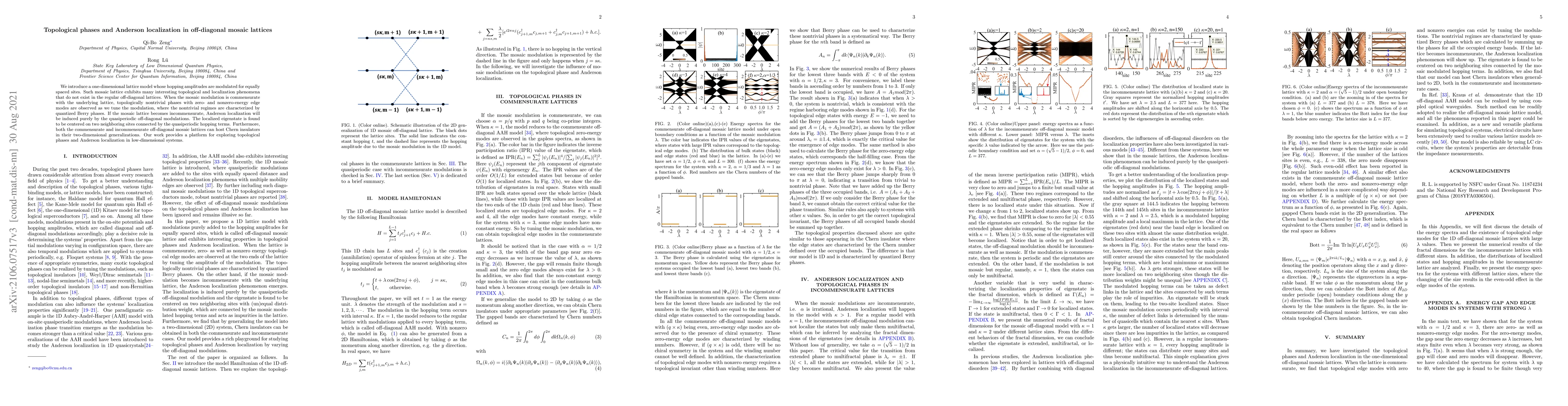 This paper introduces a one-dimensional lattice model with modulated hopping amplitudes, revealing topological phases and Anderson localization in off-diagonal mosaic lattices. Commensurate modulation leads to nontrivial topological phases with quantized Berry phases, while incommensurate modulation induces Anderson localization centered on pairs of sites.