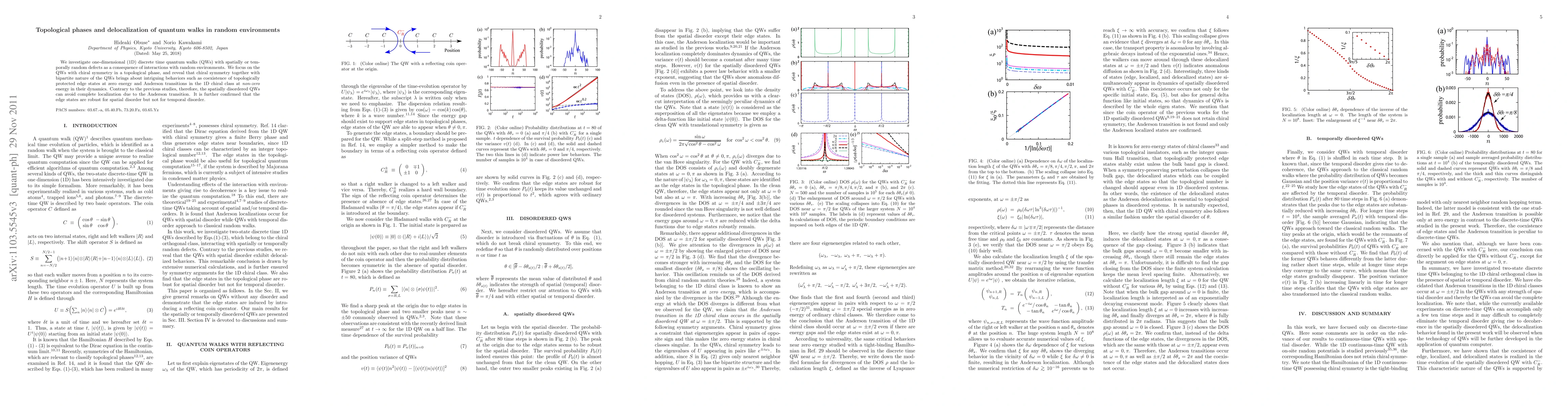 We investigate one-dimensional (1D) discrete time quantum walks (QWs) with spatially or temporally random defects as a consequence of interactions with random environments. We focus on the QWs with chiral symmetry in a topological phase, and reveal that chiral symmetry together with bipartite nature of the QWs brings about intriguing behaviors such as coexistence of topologically protected edge states at zero energy and Anderson transitions in the 1D chiral class at non-zero energy in their dynamics. Contrary to the previous studies, therefore, the spatially disordered QWs can avoid complete localization due to the Anderson transition. It is further confirmed that the edge states are robust for spatial disorder but not for temporal disorder.