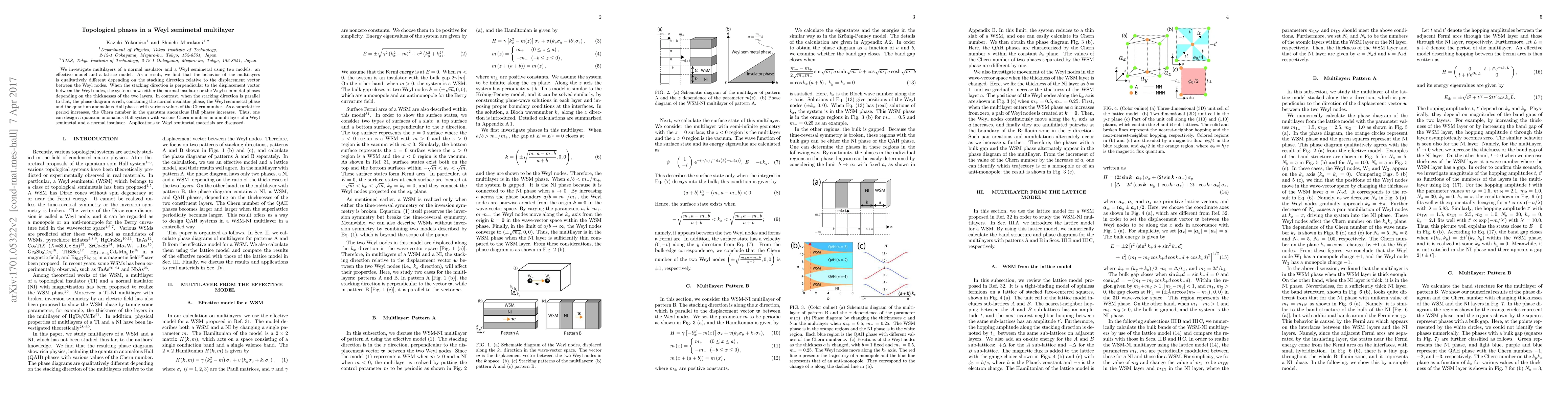 This paper examines multilayer systems combining normal insulators and Weyl semimetals, revealing distinct topological phases depending on the stacking direction relative to the displacement vector between Weyl nodes. The study uses both effective and lattice models to predict a variety of phases, including quantum anomalous Hall phases, which emerge when the stacking direction aligns with the Weyl node displacement vector.