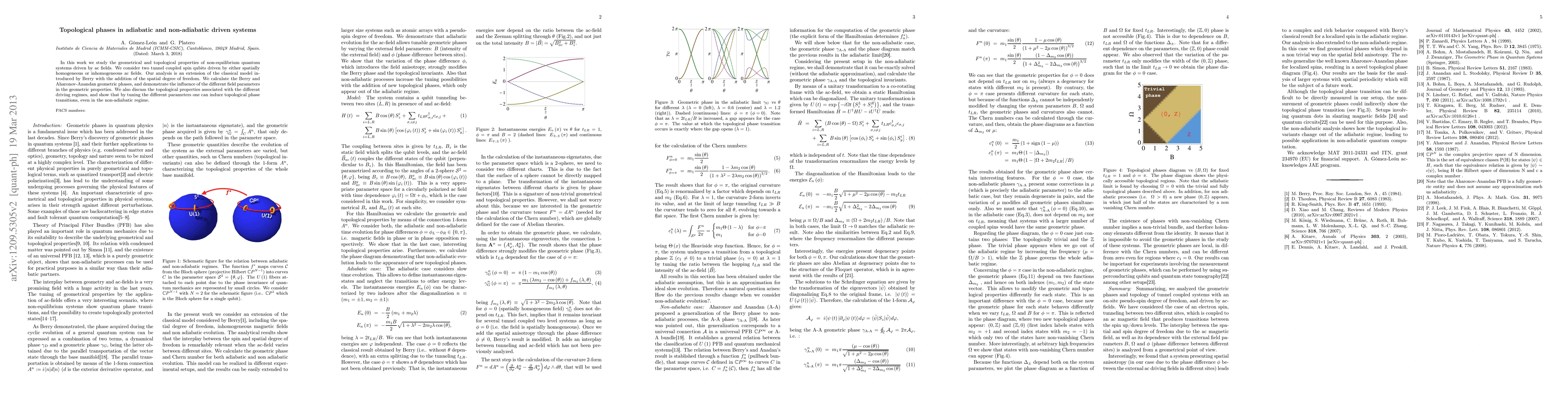 This paper explores the topological and geometric phases in non-equilibrium quantum systems driven by ac fields, focusing on tunnel-coupled spin qubits. It demonstrates the influence of field parameters on geometric phases and reveals how tuning these parameters can induce topological phase transitions, even outside the adiabatic regime.