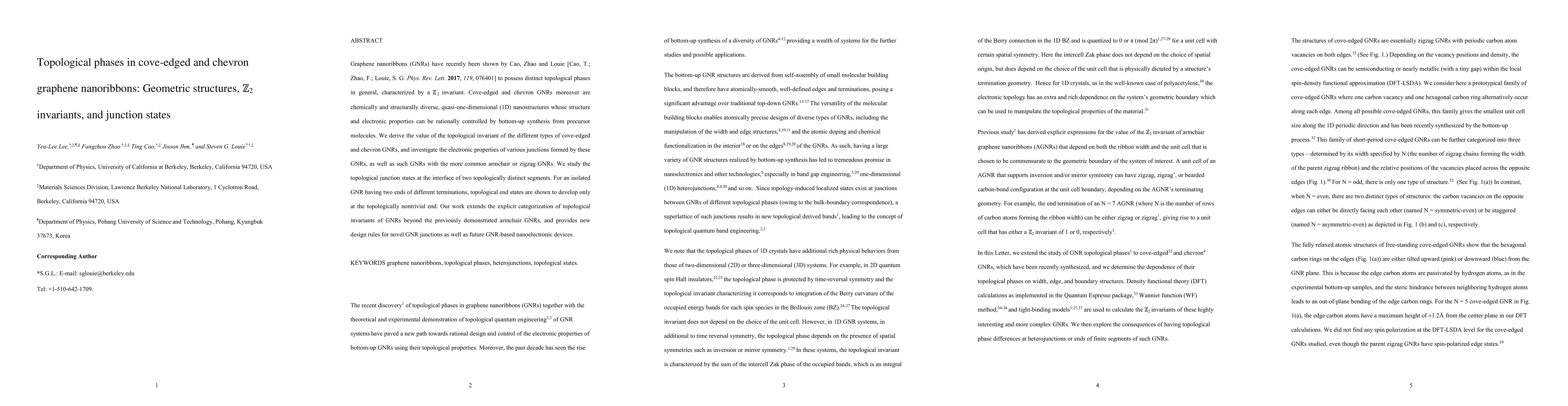 This paper investigates topological phases in cove-edged and chevron graphene nanoribbons (GNRs), deriving their Z2 invariants and examining junction states between different GNR types. It extends the categorization of topological invariants to diverse GNR structures, offering new design rules for GNR junctions and potential nanoelectronic applications.
