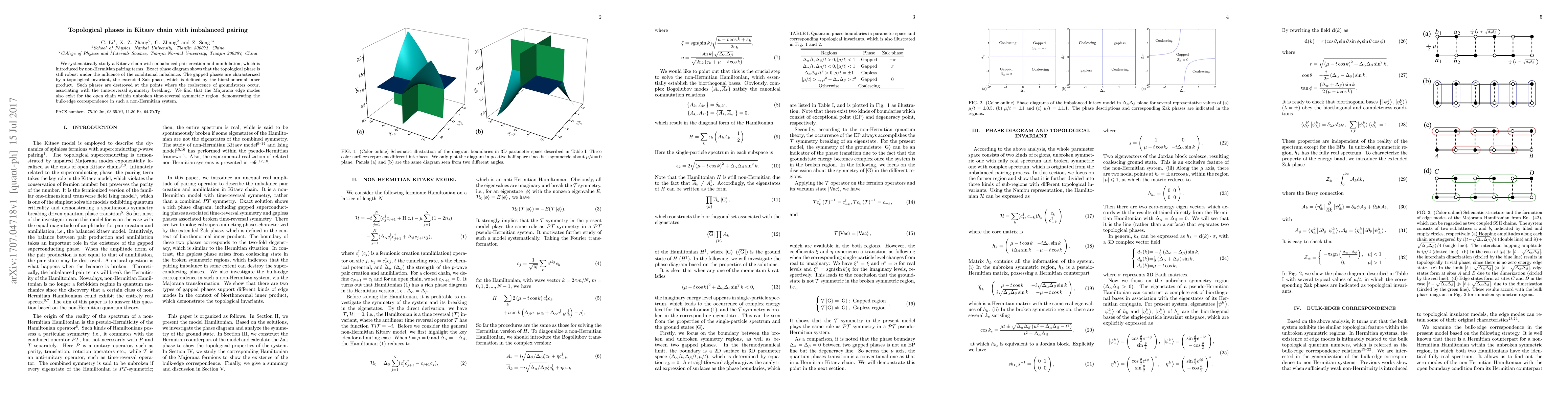 This paper investigates a Kitaev chain with imbalanced pairing due to non-Hermitian terms, revealing that topological phases remain robust despite the imbalance. The study identifies gapped topological phases via the extended Zak phase, which are disrupted only at points of groundstate coalescence linked to time-reversal symmetry breaking, while Majorana edge modes persist in the unbroken time-reversal region.
