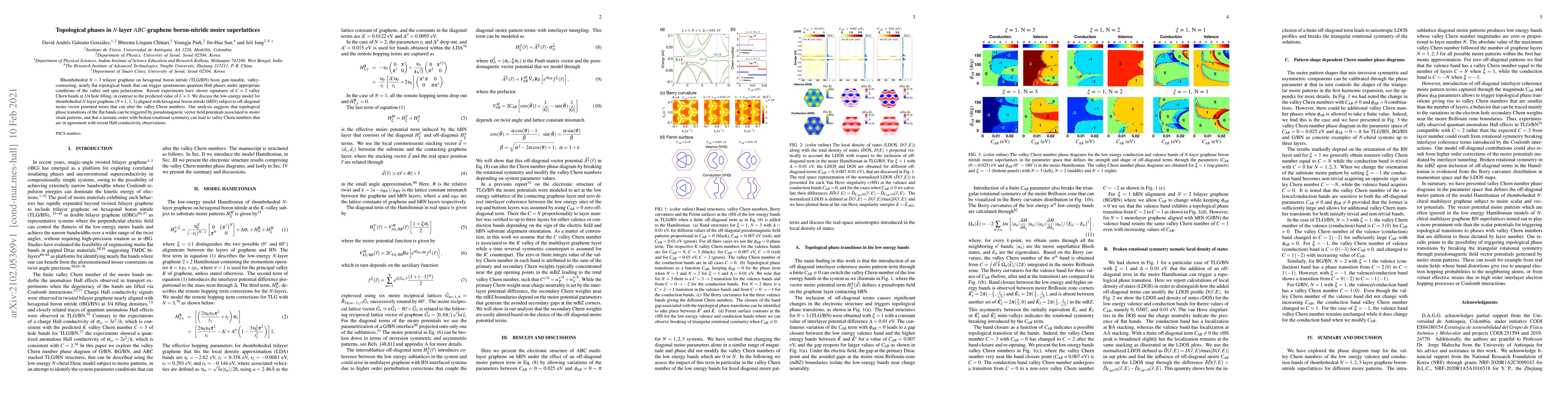 This paper explores topological phases in N-layer ABC-graphene boron-nitride moiré superlattices, revealing that pseudomagnetic vector field potentials from moiré strain can trigger topological phase transitions and that nematic order can result in valley Chern numbers matching experimental observations.