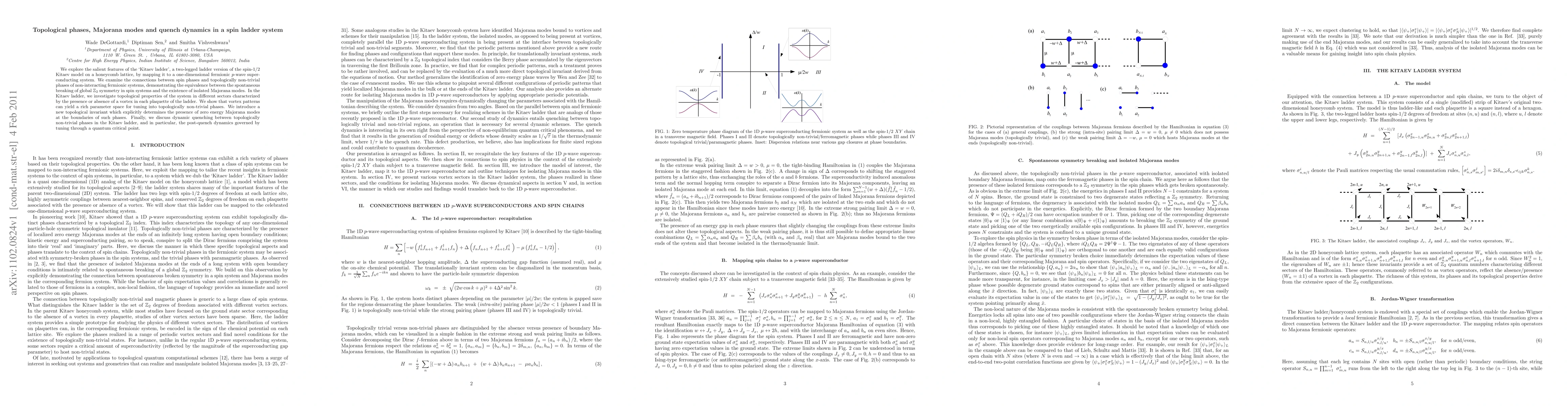 This paper investigates the topological properties and Majorana modes in the Kitaev ladder system, demonstrating the equivalence between spin phases and topological phases in non-interacting fermionic systems. It introduces a new topological invariant to determine Majorana modes and explores dynamic quenching effects, particularly focusing on the post-quench dynamics through a quantum critical point.