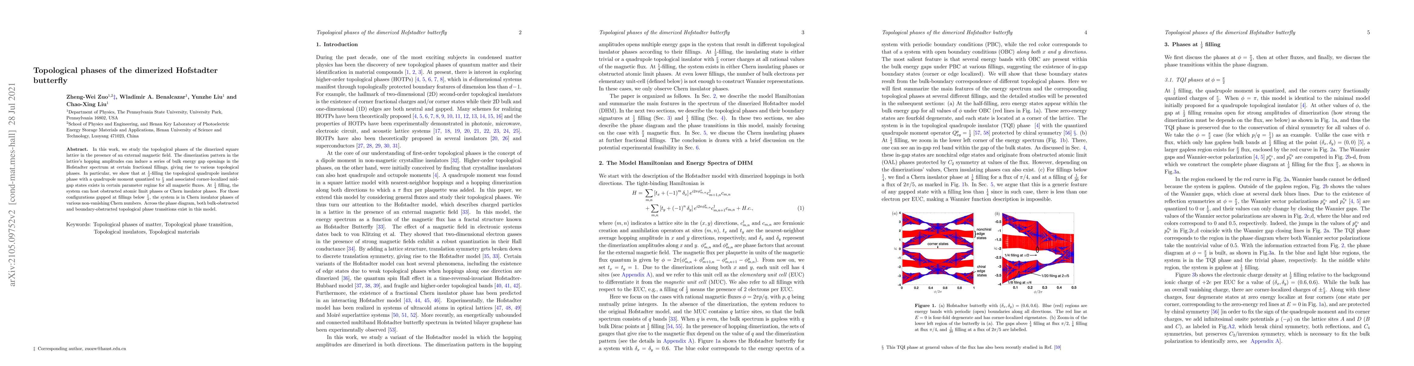 Researchers discovered topological phases in a dimerized square lattice with an external magnetic field, including quadrupole insulator and Chern insulator phases with non-vanishing Chern numbers.