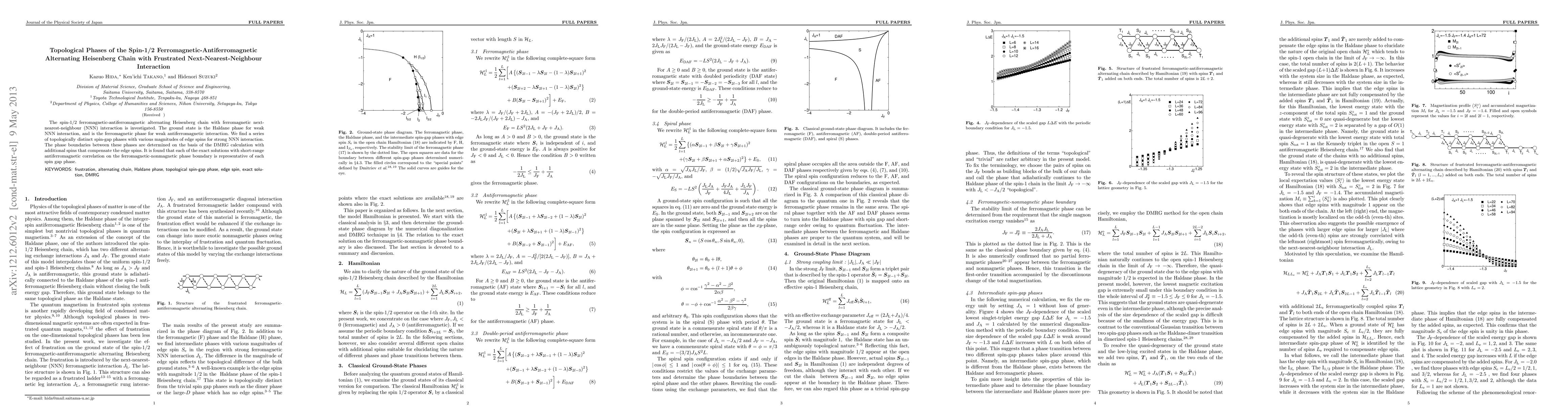This paper investigates the topological phases of a spin-1/2 ferromagnetic-antiferromagnetic alternating Heisenberg chain with a frustrated next-nearest-neighbour interaction. It reveals the presence of Haldane and ferromagnetic phases under weak interactions, and topologically distinct spin-gap phases with varying edge spins under strong interactions.