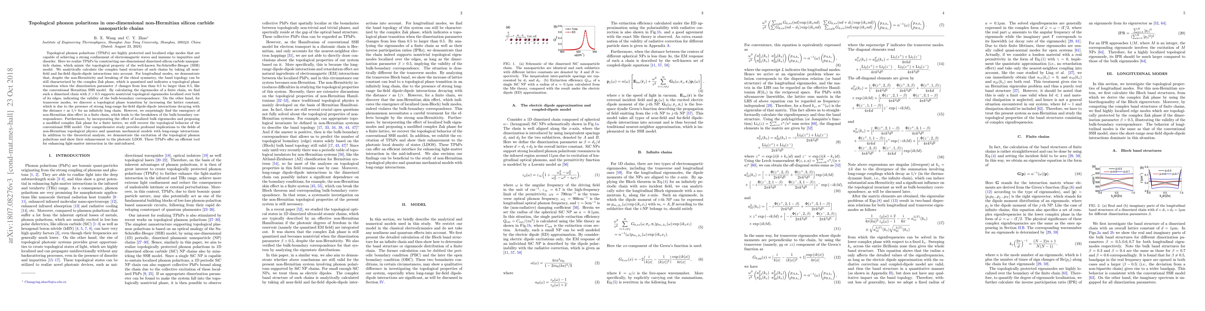 This paper explores topological phonon polaritons in one-dimensional non-Hermitian silicon carbide nanoparticle chains, demonstrating their robustness and edge localization akin to the SSH model. It reveals a topological phase transition via changes in dimerization and lattice constants, and discusses the emergence of the non-Hermitian skin effect.