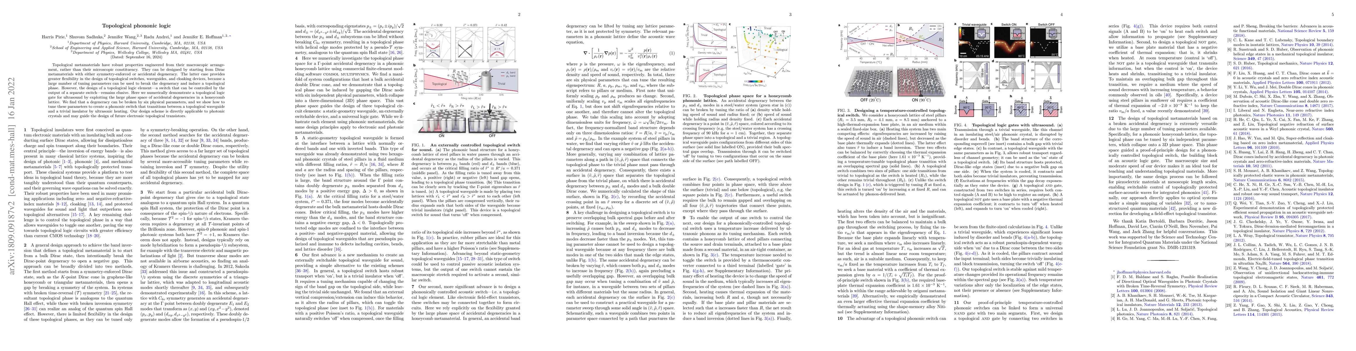 This paper demonstrates the creation of a topological phononic logic gate using ultrasound in a honeycomb lattice, leveraging accidental degeneracies to design a tunable switch between topological waveguide and trivial insulator states. The approach is applicable to a range of topological metamaterials and could inform future electronic topological transistors.