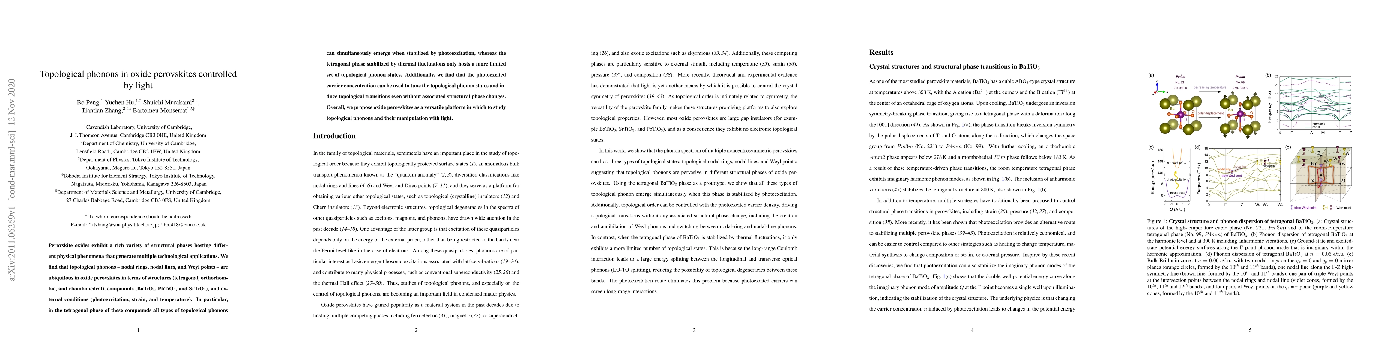 Research finds topological phonons in oxide perovskites can emerge under various conditions, including photoexcitation, strain, and temperature, offering a platform to study and manipulate these phenomena with light.