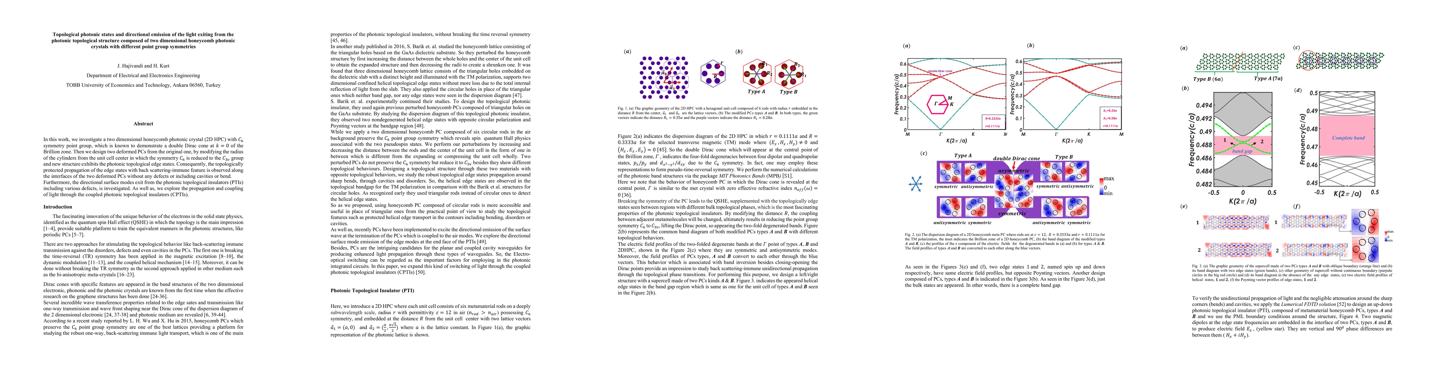 This research explores a 2D honeycomb photonic crystal with C_6 symmetry, exhibiting double Dirac cones. By deforming the crystal to reduce symmetry to C_3u03b7, topological edge states with backscattering-immune properties are observed. The study also investigates directional surface modes from defective PTIs and coupled photonic topological insulators (CPTIs).