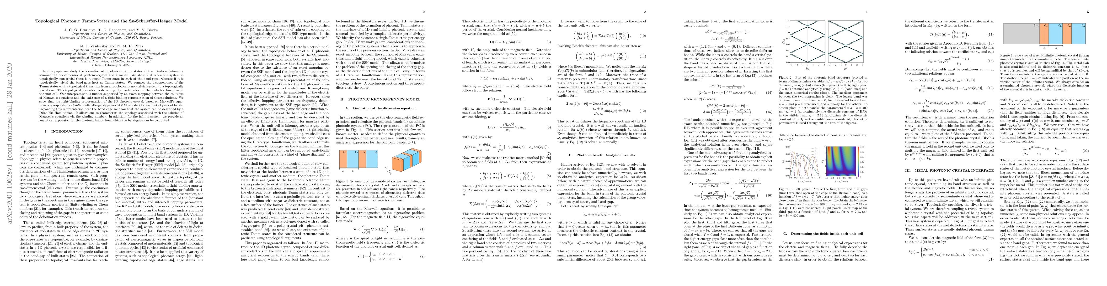In this paper we study the formation of topological Tamm states at the interface between a semi-infinite one-dimensional photonic-crystal and a metal. We show that when the system is topologically non-trivial there is a single Tamm state in each of the band-gaps, whereas if it is topologically trivial the band-gaps host no Tamm states. We connect the disappearance of the Tamm states with a topological transition from a topologically non-trivial system to a topologically trivial one. This topological transition is driven by the modification of the dielectric functions in the unit cell. Our interpretation is further supported by an exact mapping between the solutions of Maxwell's equations and the existence of a tight-binding representation of those solutions. We show that the tight-binding representation of the 1D photonic crystal, based on Maxwell's equations, corresponds to a Su-Schrieffer-Heeger-type model (SSH-model) for each set of pairs of bands. Expanding this representation near the band edge we show that the system can be described by a Dirac-like Hamiltonian. It allows one to characterize the topology associated with the solution of Maxwell's equations via the winding number. In addition, for the infinite system, we provide an analytical expression for the photonic bands from which the band-gaps can be computed.