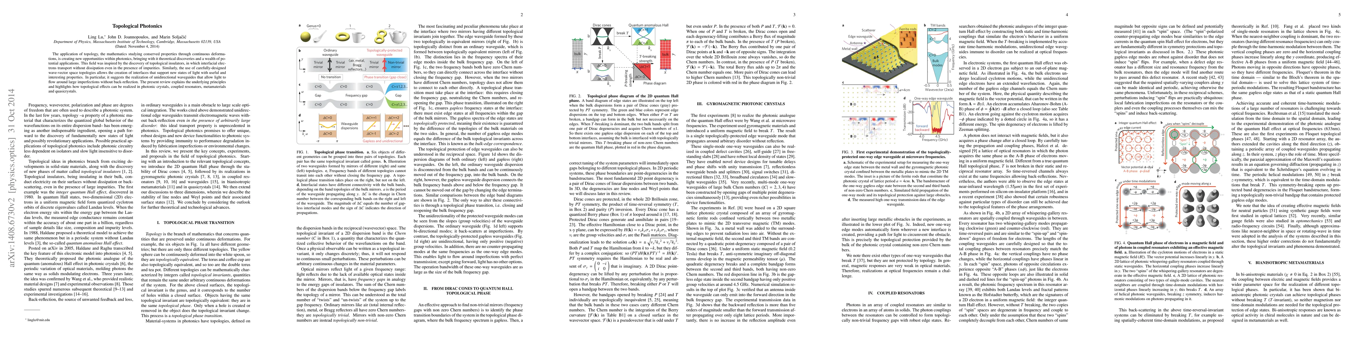 Topological photonics enables light to flow around imperfections without back-reflection, leading to new applications in photonic crystals, coupled resonators, metamaterials, and quasicrystals. These novel waveguides have the potential to revolutionize fields such as communication and sensing technologies.