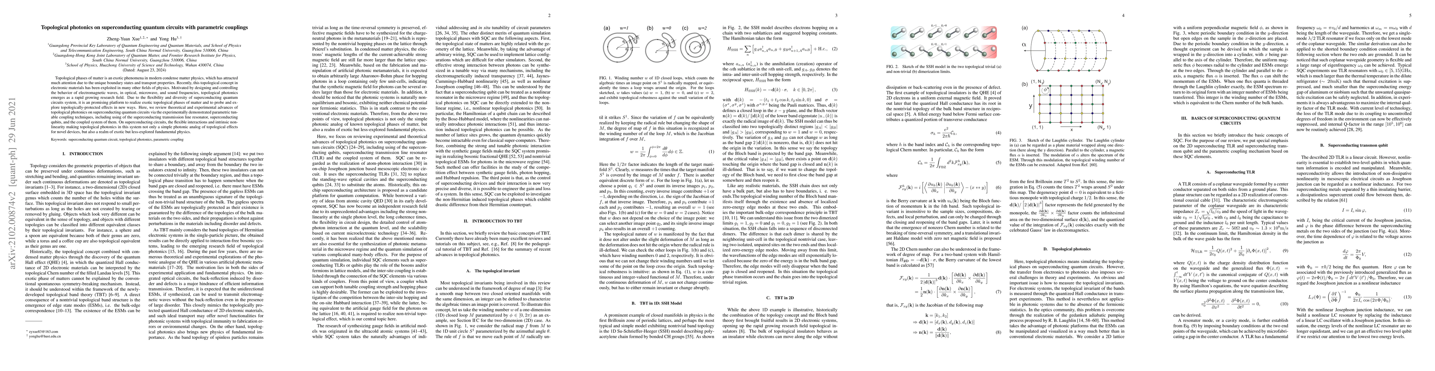 This paper reviews advances in topological photonics on superconducting quantum circuits, focusing on the use of parametric couplings to realize and explore topological phases and their effects. It highlights the potential of superconducting circuits for novel photonic devices and fundamental physics research.