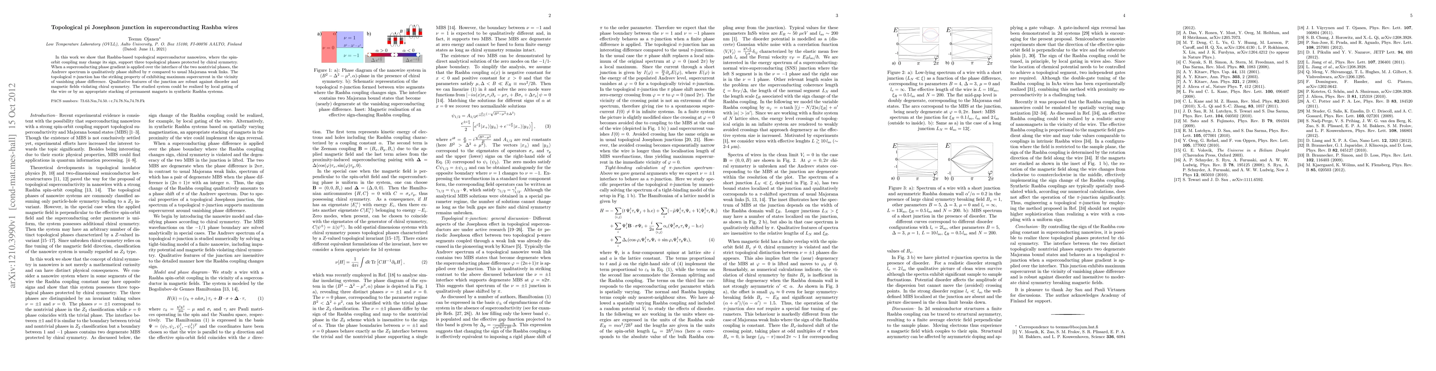 In this work we show that Rashba-based topological superconductor nanowires, where the spin-orbit coupling may change its sign, support three topological phases protected by chiral symmetry. When a superconducting phase gradient is applied over the interface of the two nontrivial phases, the Andreev spectrum is qualitatively phase shifted by \pi compared to usual Majorana weak links. The topological \pi-junction has the striking property of exhibiting maximum supercurrent in the vicinity of vanishing phase difference. Qualitative features of the junction are robust against disorder and magnetic fields violating chiral symmetry. The studied system could be realized by local gating of the wire or by an appropriate stacking of permanent magnets in synthetic Rashba systems.