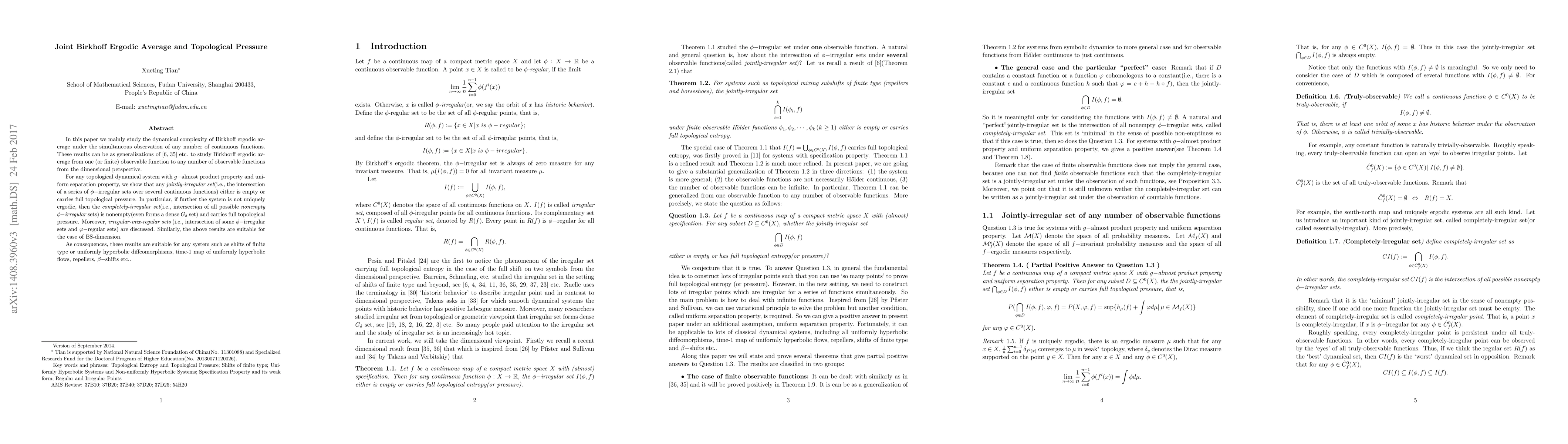 In this paper we mainly study the dynamical complexity of Birkhoff ergodic average under the simultaneous observation of any number of continuous functions. These results can be as generalizations of [6,35] etc. to study Birkhorff ergodic average from one (or finite) observable function to any number of observable functions from the dimensional perspective. For any topological dynamical system with $g-$almost product property and uniform separation property, we show that any {\it jointly-irregular set}(i.e., the intersection of a series of $\phi-$irregular sets over several continuous functions) either is empty or carries full topological pressure. In particular, if further the system is not uniquely ergodic, then the {\it completely-irregular set}(i.e., intersection of all possible {\it nonempty $\phi-$irregular} sets) is nonempty(even forms a dense $G_\delta$ set) and carries full topological pressure. Moreover, {\it irregular-mix-regular sets} (i.e., intersection of some $ \phi-$irregular sets and $ \varphi-$regular sets) are discussed. Similarly, the above results are suitable for the case of BS-dimension. As consequences, these results are suitable for any system such as shifts of finite type or uniformly hyperbolic diffeomorphisms, time-1 map of uniformly hyperbolic flows, repellers, $\beta-$shifts etc..