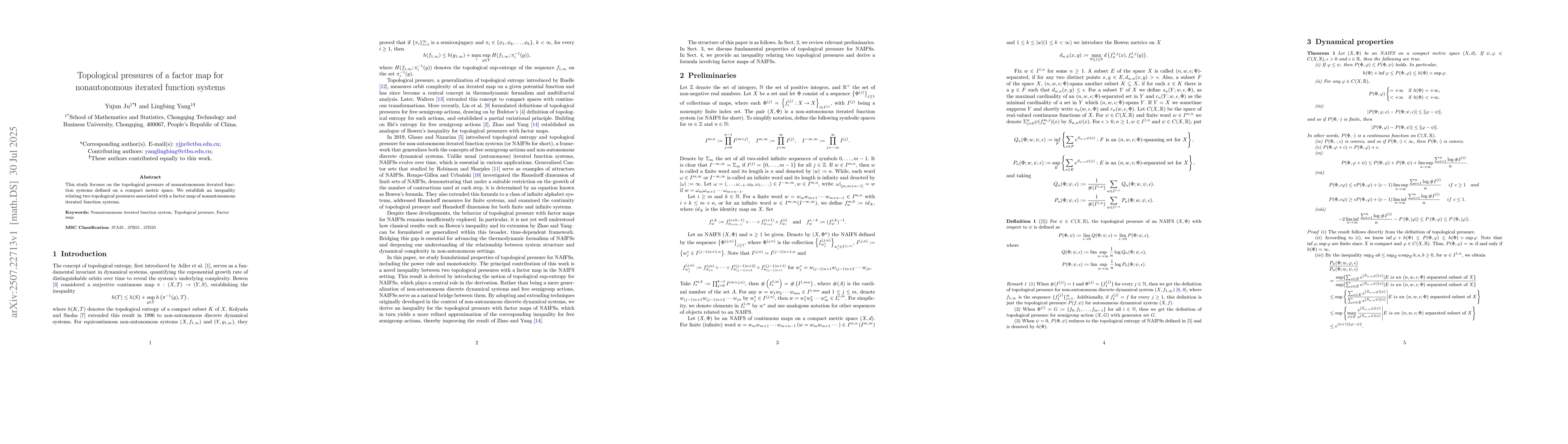 The paper introduces and proves an inequality for topological pressures in nonautonomous iterated function systems, extending previous results to a broader class of systems.