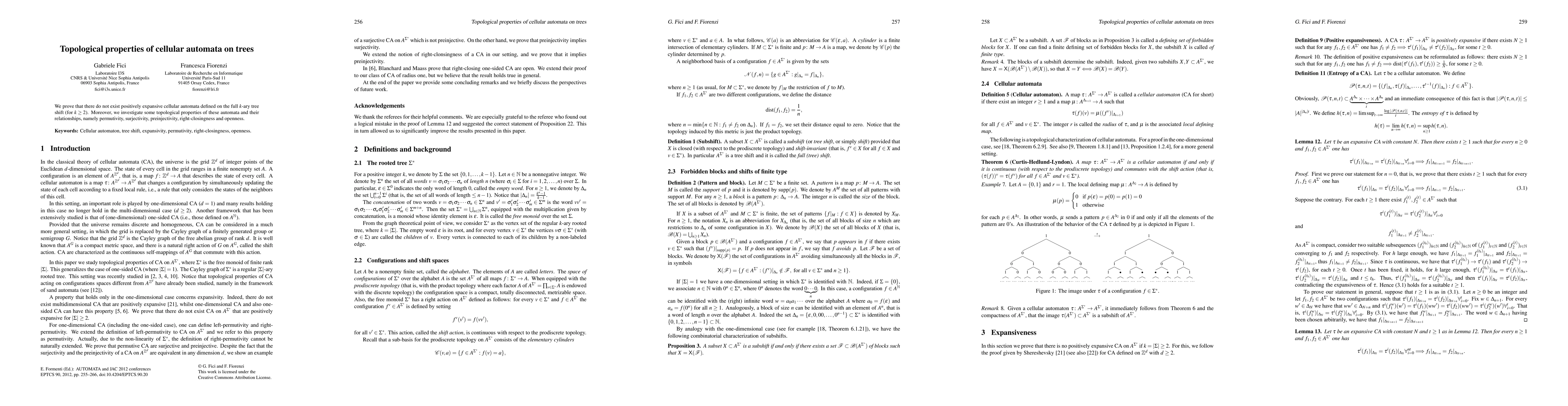 Summary: The paper proves the absence of positively expansive cellular automata on full k-ary tree shifts for k>=2 and explores topological properties including permutivity, surjectivity, preinjectivity, right-closingness, and openness of these automata.