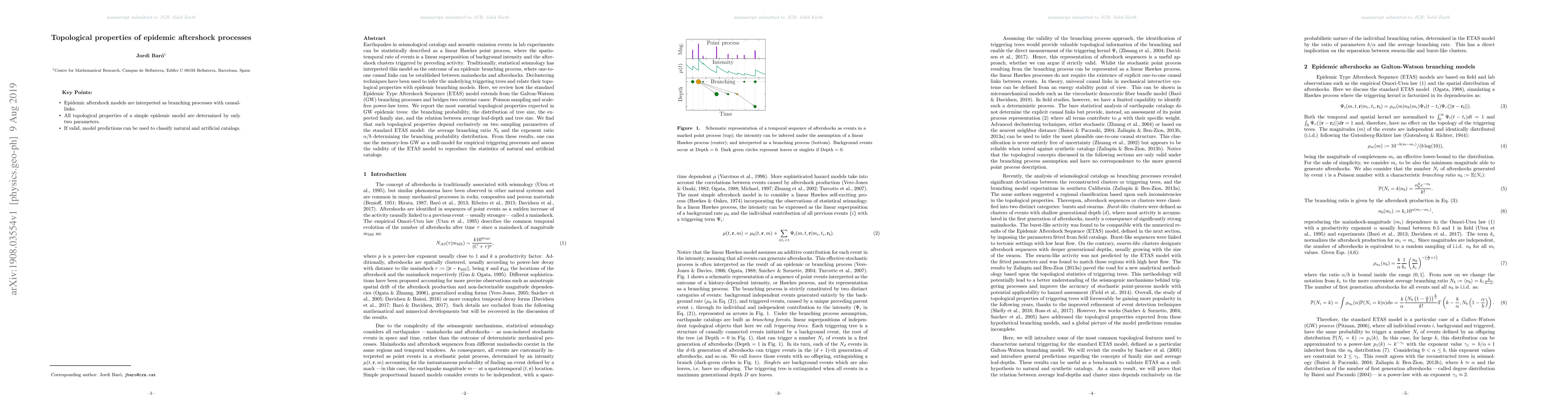 A study on earthquake aftershock processes found that a key model can be simplified to a memory-less branching process, allowing for comparison with empirical data and assessment of the model's validity.