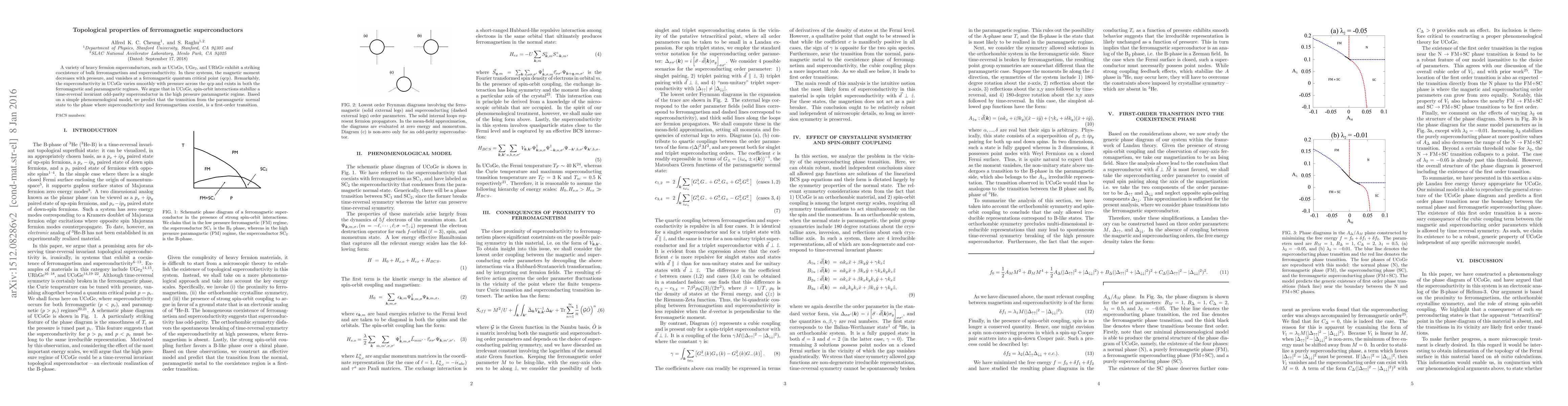 A variety of heavy fermion superconductors, such as UCoGe, UGe$_2$, and URhGe exhibit a striking coexistence of bulk ferromagnetism and superconductivity. In these systems, the magnetic moment decreases with pressure, and vanishes at a ferromagnetic quantum critical point (qcp). Remarkably, the superconductivity in UCoGe varies smoothly with pressure across the qcp and exists in both the ferromagnetic and paramagnetic regimes. We argue that in UCoGe, spin-orbit interactions stabilize a time-reversal invariant odd-parity superconductor in the high pressure paramagnetic regime. Based on a simple phenomenological model, we predict that the transition from the paramagnetic normal state to the phase where superconductivity and ferromagnetism coexist, is a first-order transition.