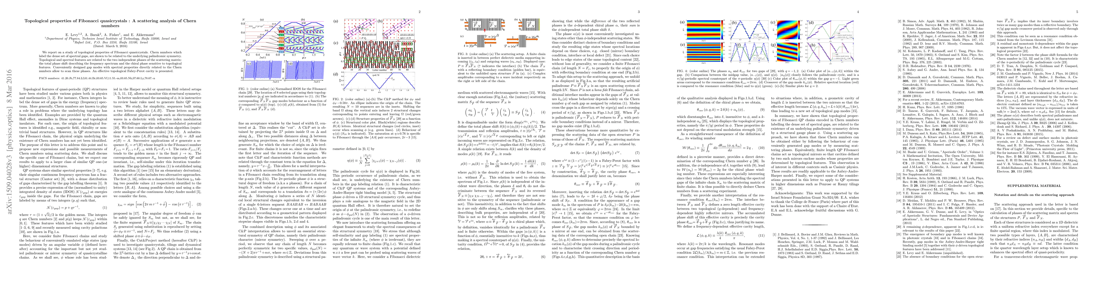 This paper investigates the topological properties of Fibonacci quasicrystals, demonstrating a connection between Chern numbers and palindromic symmetry. It explores how topological and spectral features relate to the scattering matrix's phases, using designed gap modes to analyze these relationships.