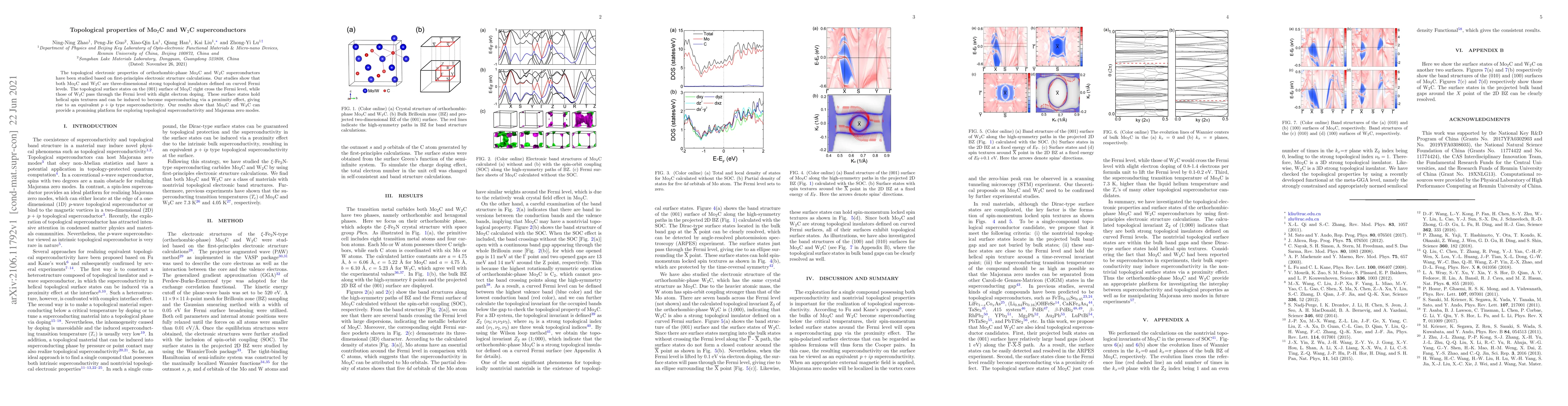 Mo$_{2}$C and W$_{2}$C superconductors exhibit topological properties, with Mo$_{2}$C being a three-dimensional strong topological insulator that can become superconducting via a proximity effect, offering a promising platform for exploring topological superconductivity.