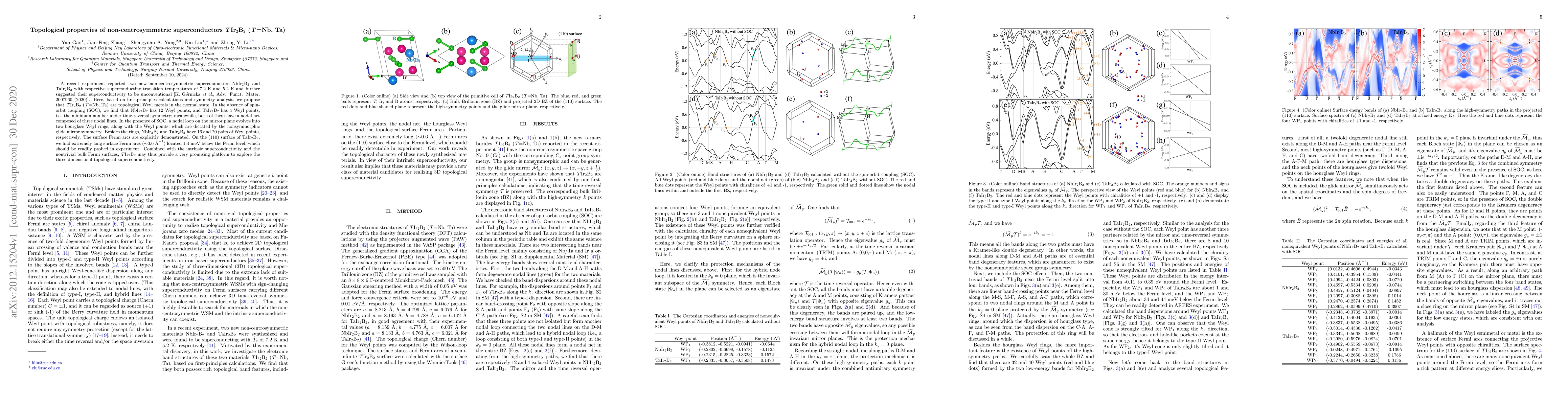 This study uses first-principles calculations to reveal that NbIr2B2 and TaIr2B2, newly discovered non-centrosymmetric superconductors, are topological Weyl metals in their normal state. In the presence of spin-orbit coupling, these materials exhibit Weyl points, nodal loops transforming into hourglass Weyl rings, and surface Fermi arcs, indicating their potential as a platform for exploring 3D topological superconductivity.