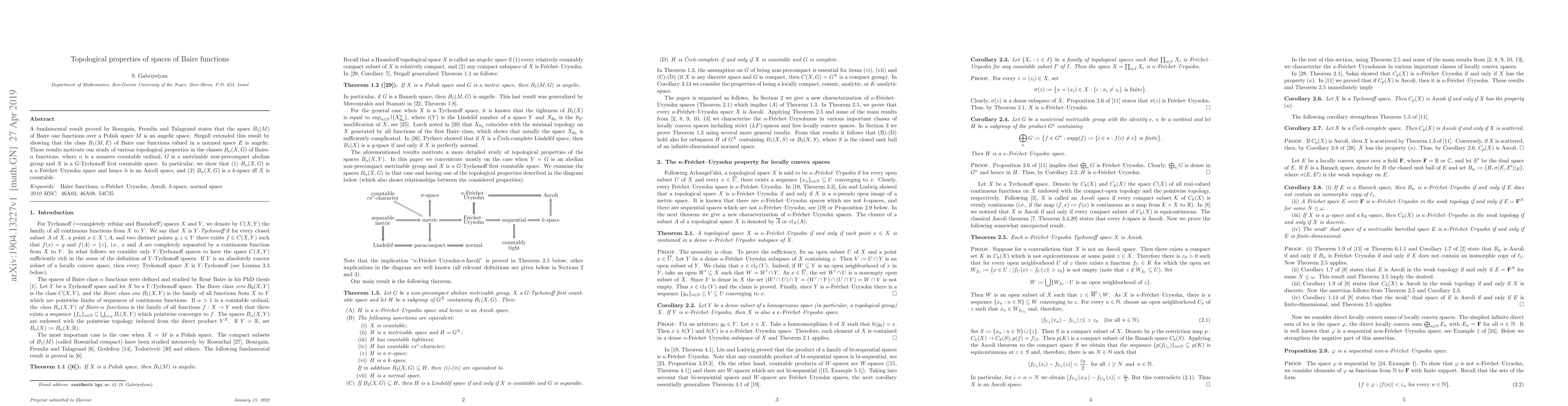 A fundamental result proved by Bourgain, Fremlin and Talagrand states that the space $B_1(M)$ of Baire one functions over a Polish space $M$ is an angelic space. Stegall extended this result by showing that the class $B_1(M,E)$ of Baire one functions valued in a normed space $E$ is angelic. These results motivate our study of various topological properties in the classes $B_\alpha(X,G)$ of Baire-$\alpha$ functions, where $\alpha$ is a nonzero countable ordinal, $G$ is a metrizable non-precompact abelian group and $X$ is a $G$-Tychonoff first countable space. In particular, we show that (1) $B_\alpha(X,G)$ is a $\kappa$-Fr\'{e}chet--Urysohn space and hence it is an Ascoli space, and (2) $B_\alpha(X,G)$ is a $k$-space iff $X$ is countable.