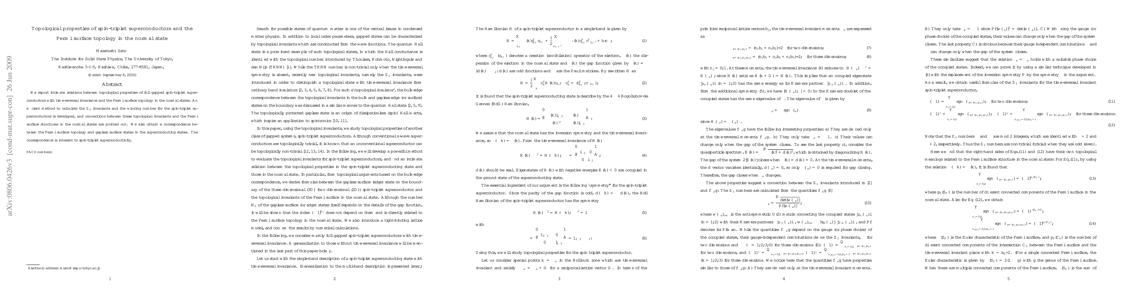 Researchers discovered connections between topological properties of spin-triplet superconductors and Fermi surface topology in normal states, providing insights into the nature of these materials.