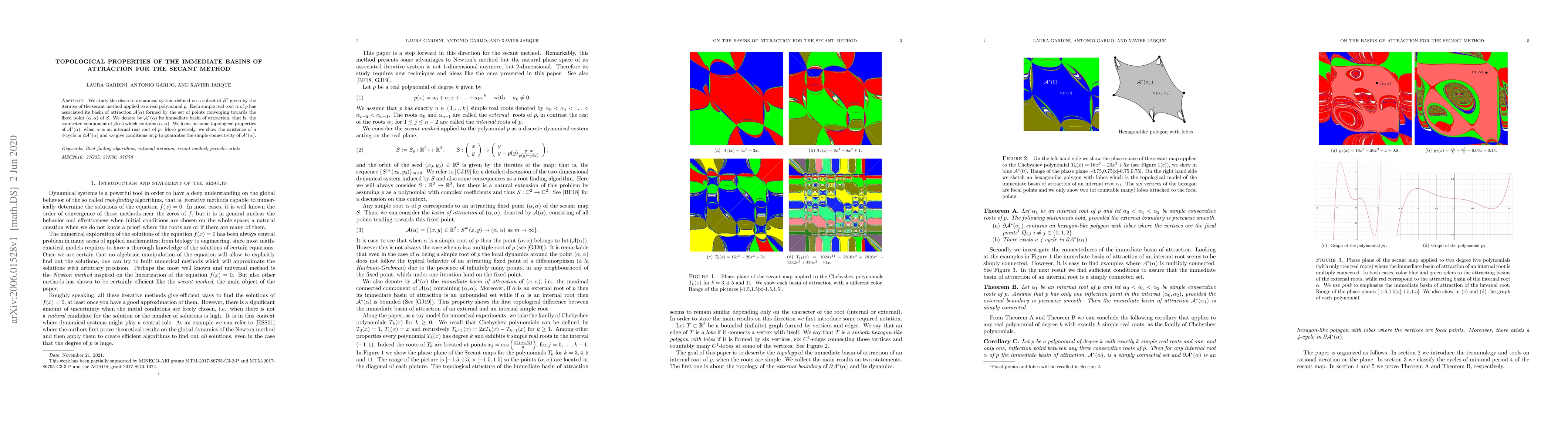 Researchers study topological properties of the immediate basins of attraction for the secant method, finding a 4-cycle in the boundary and conditions for simple connectivity of these basins.