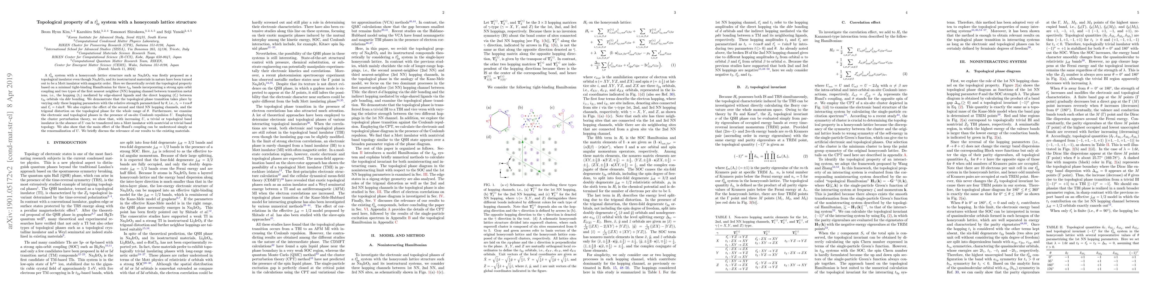 A $t_{2g}^5$ system with a honeycomb lattice structure such as Na$_2$IrO$_3$ was firstly proposed as a topological insulator even though Na$_2$IrO$_3$ and its isostructural materials in nature have been turned out to be a Mott insulator with magnetic order. Here we theoretically revisit the topological property based on a minimal tight-binding Hamiltonian for three $t_{2g}$ bands incorporating a strong spin orbit coupling and two types of the first nearest neighbor (NN) hopping channel between transition metal ions, i.e., the hopping ($t_1$) mediated by edge-shared ligands and the direct hopping ($t_1'$) between $t_{2g}$ orbitals via $dd\sigma$ bonding. We demonstrate that the topological phase transition takes place by varying only these hopping parameters with the relative strength parametrized by $\theta$, i.e., $t_1=t\cos\theta$ and $t_1'=t\sin\theta$. We also explore the effect of the second and third NN hopping channels, and the trigonal distortion on the topological phase for the whole range of $\theta$. Furthermore, we examine the electronic and topological phases in the presence of on-site Coulomb repulsion $U$. Employing the cluster perturbation theory, we show that, with increasing $U$, a trivial or topological band insulator in the absence of $U$ can be transferred into a Mott insulator with nontrivial or trivial band topology. We also show that the main effect of the Hund's coupling can be understood simply as the renormalization of $U$. We briefly discuss the relevance of our results to the existing materials.